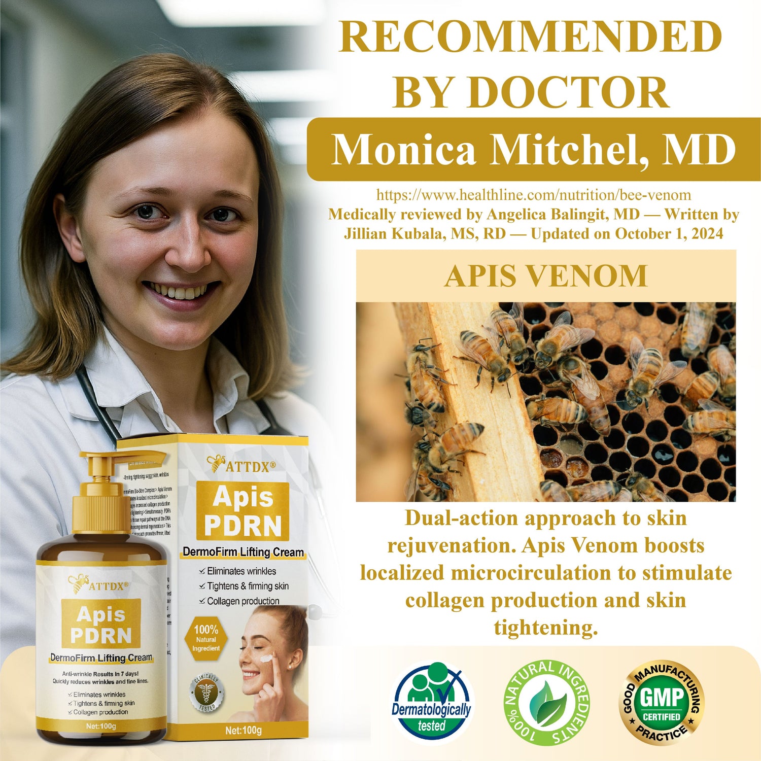 ATTDX® ApisPDRN DermoFirm Lifting Cream uses Apis Venom to trigger a controlled micro-inflammatory response that activates fibroblasts, stimulating a natural lifting effect and improved skin structure.