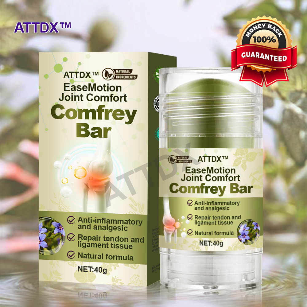 At ATTDX™, we deliver unparalleled joint relief with our advanced herbal solution, designed to soothe discomfort and enhance mobility. Our ATTDX™ EaseMotion Joint Comfort Comfrey Bar is expertly designed to provide effective relief from joint pain and stiffness. It delivers soothing comfort and supports enhanced mobility with regular use, helping you return to your favorite activities with ease.