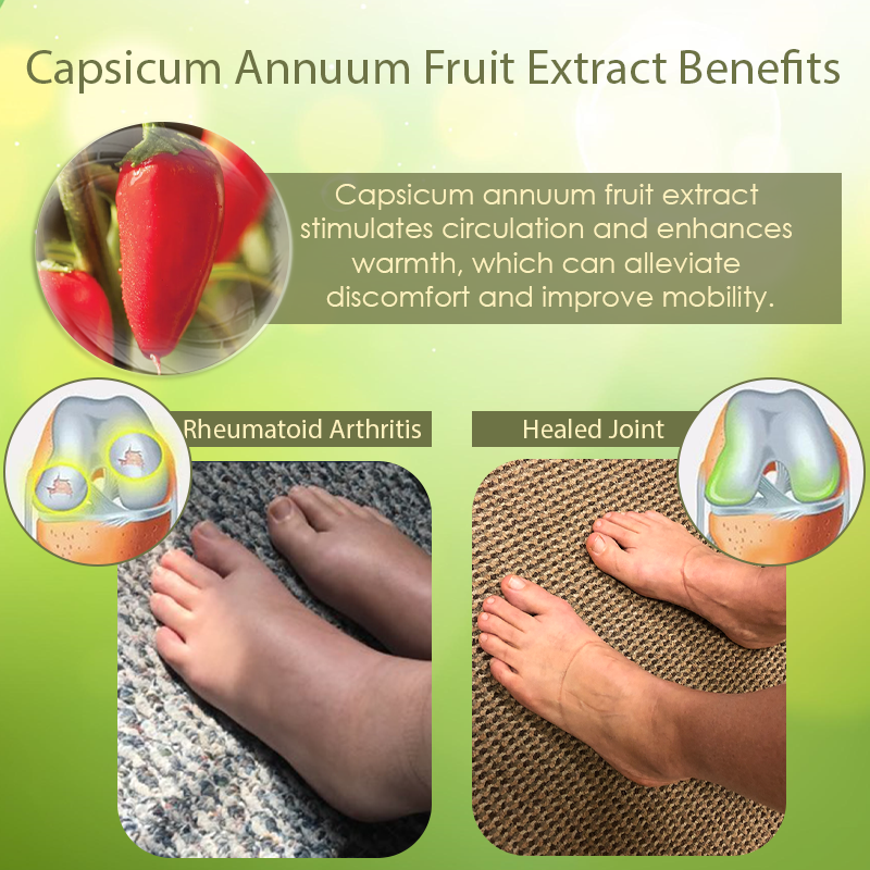 Unlock the power of nature with ATTDX™ Herbal NeuroSoothing Cream, enriched with Capsicum annuum fruit extract which is known for its remarkable ability to provide warm and soothing relief from joint pain. This natural ingredient stimulates circulation that helps to alleviate discomfort and enhance overall joint health by delivering essential nutrients to the affected areas. Capsicum annuum also contains capsaicin, a compound that effectively blocks pain signals, providing further support for those dealing with chronic pain. Combined with other potent elements, this formulation promotes mobility, reduces stiffness, and enhances your overall quality of life.