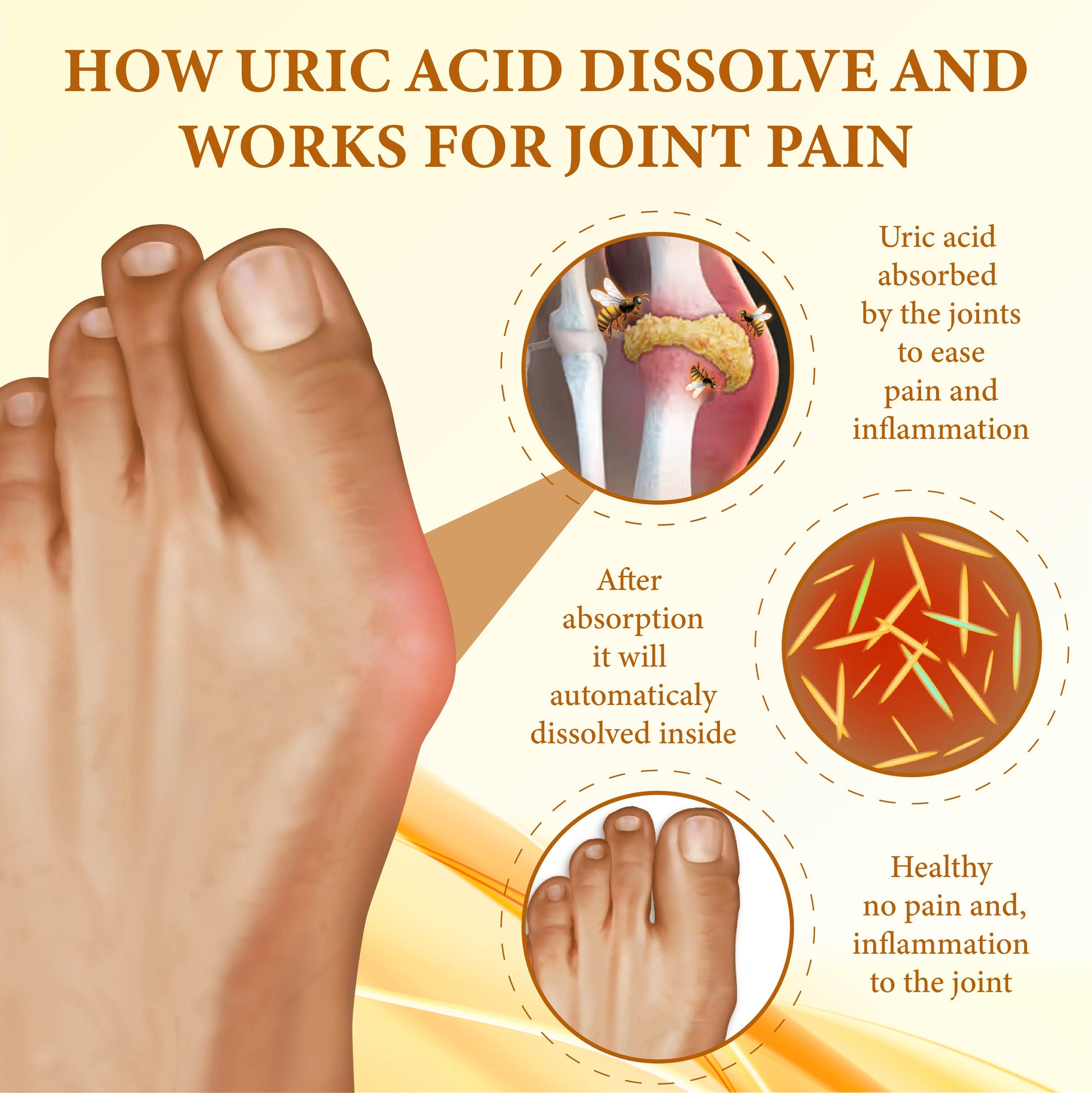 The cream uses bee venom peptides to reduce inflammation, dissolve uric acid crystals, and improve joint comfort.