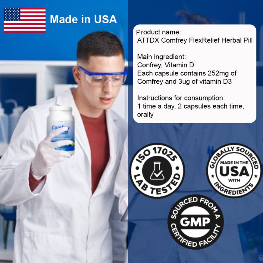 Flex your way to enhanced comfort and lasting relief with ATTDX Comfrey FlexRelief Herbal Pill, designed to support joint health and ease discomfort naturally