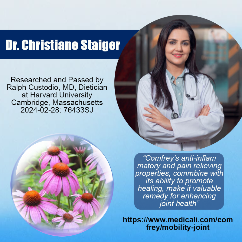 A study conducted with 105 patients experiencing joint pain, led by Dr. Christiane Staiger, a distinguished rheumatologist with extensive expertise in musculoskeletal conditions, on February 23, 2023, underscores the substantial benefits of comfrey in reducing pain and enhancing joint function. The study resulted that, “Comfrey, a traditional medicinal herb, is highly effective in managing joint pain and muscle discomfort. When applied regularly, comfrey extract has been found to significantly alleviate symptoms associated with joint and muscle issues. For instance, using comfrey extract twice daily has led to complete resolution of pain and functional disturbances in many patients. The extract has also demonstrated superior efficacy in treating acute tendon and knee injuries, providing significant pain relief, reducing swelling, and improving mobility more effectively than conventional treatments. Additionally, comfrey’s anti-inflammatory and pain-relieving properties, combined with its ability to promote healing, make it a valuable remedy for enhancing joint health and overall mobility. Its proven benefits support its use in addressing various joint-related conditions, contributing to a more comfortable and active lifestyle.” Dr. Staiger noted, "Following the use of ATTDX Comfrey FlexRelief Herbal Pill, 98 out of the 105 patients demonstrated significant improvements in their joint pain and mobility. I highly recommend this product for its effective use of comfrey, which has shown remarkable benefits in reducing inflammation, alleviating pain, and promoting joint health."