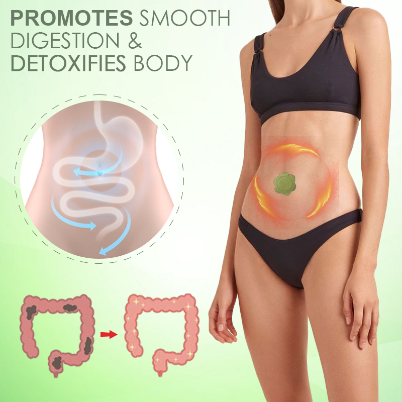 The patch uses soothing heat to enhance intestinal movement and support detoxification.