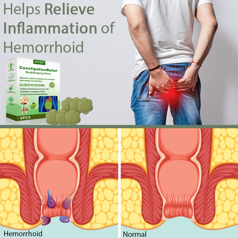 Discover soothing relief with our ATTDX™ ConstipationRelief BodyShaping Patch, designed to alleviate the inflammation associated with hemorrhoids. Our patch targets swelling and discomfort, offering effective relief and promoting overall comfort. By enhancing digestive health and reducing inflammation, it provides a more comfortable and supportive solution for managing hemorrhoid-related issues. Enjoy a renewed sense of ease and well-being with our innovative approach to digestive and inflammation relief.