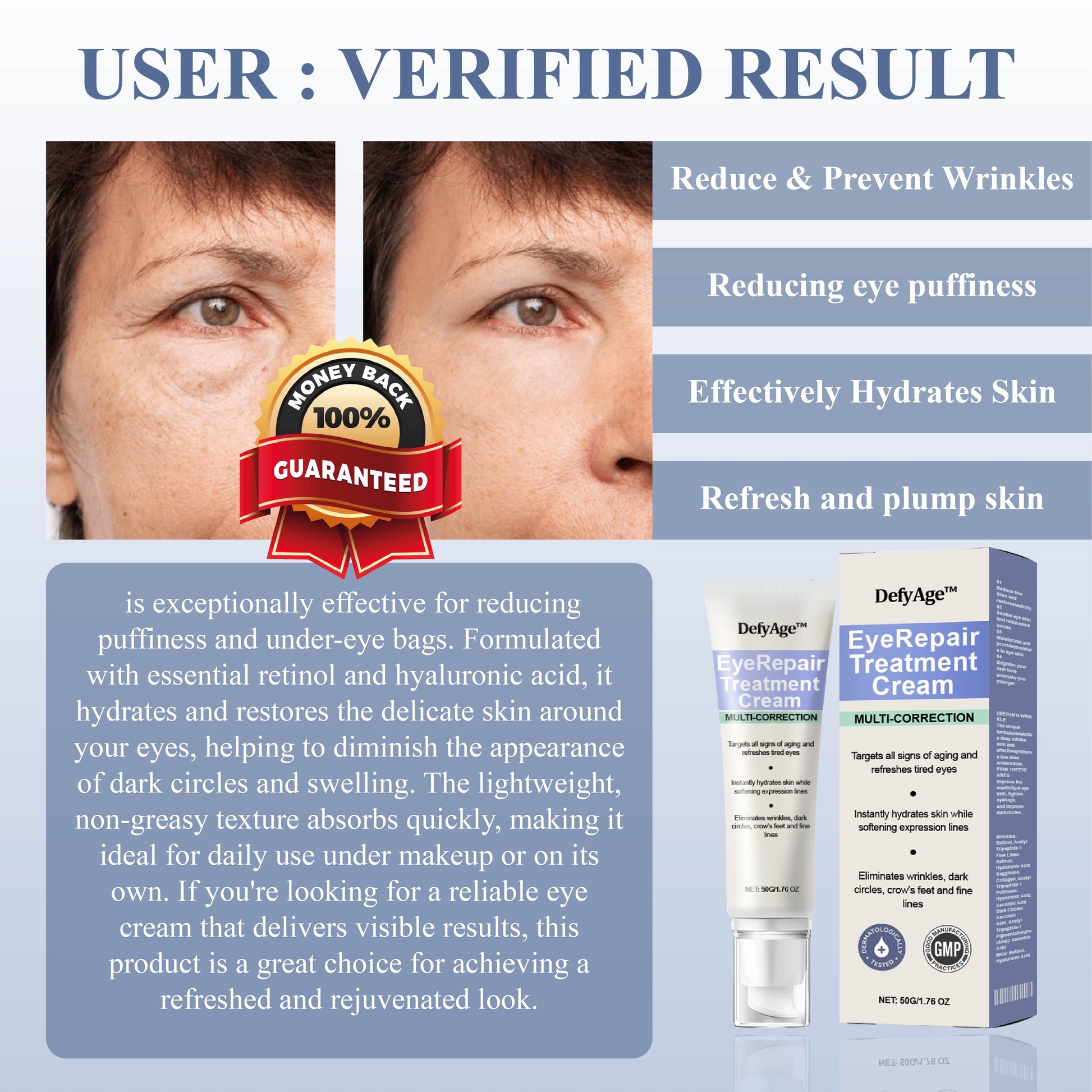 Clearer and brighter eyes with DefyAge™ EyeRepair Treatment Cream– Smooth fine lines, reduce puffiness, and restore youthful radiance effortlessly