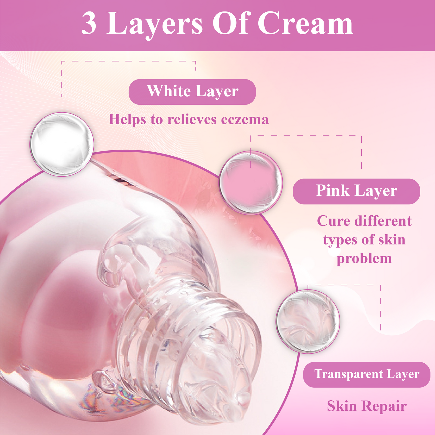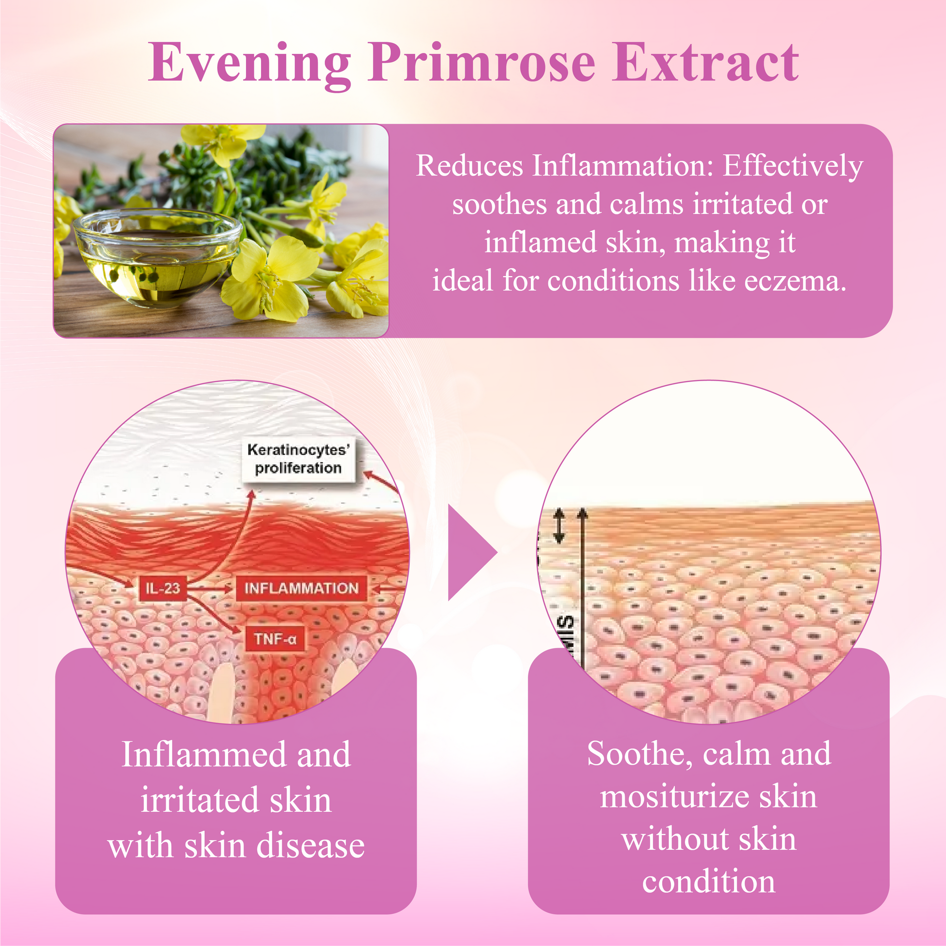 The pink layer, enriched with Evening Primrose Extract, is essential for reducing inflammation and soothing irritated skin. It effectively calms conditions like eczema, helping to alleviate discomfort and improve skin texture. This targeted approach promotes a smoother, more even complexion.