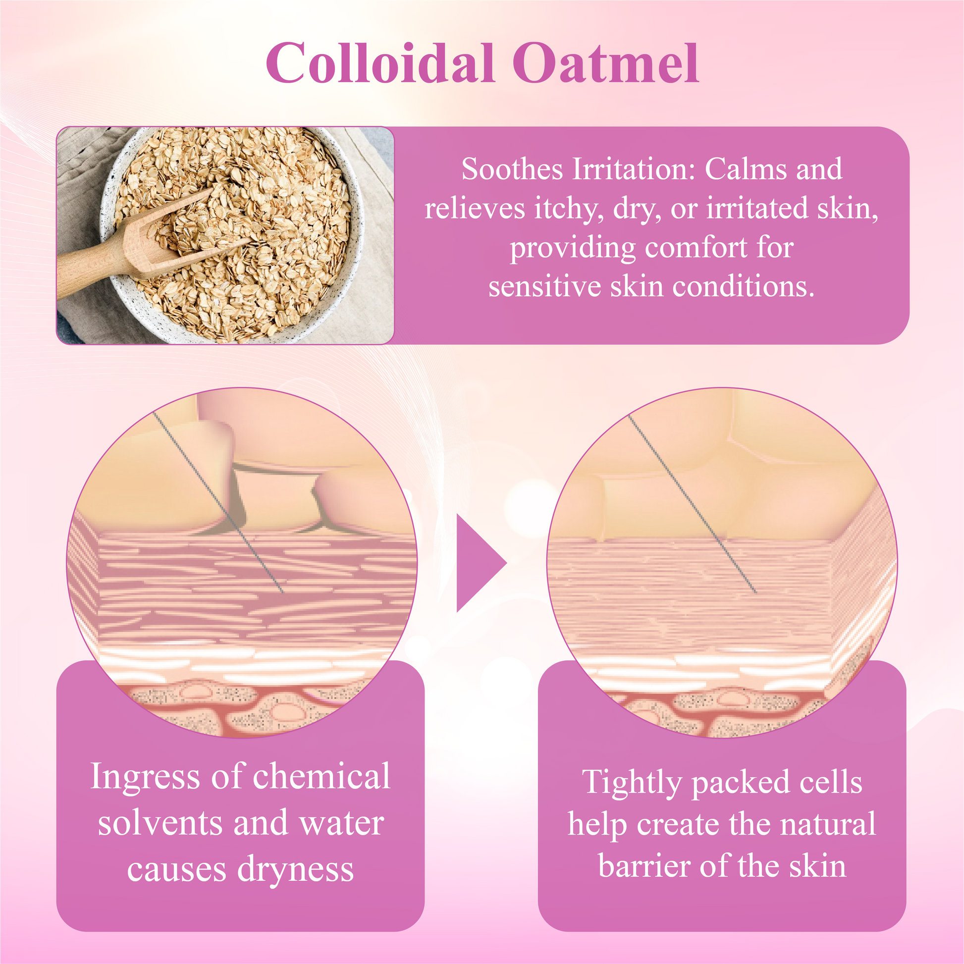 The white layer contains Colloidal Oatmeal, which is known for its soothing properties. It relieves itching and irritation, offering comfort to sensitive skin. This layer helps to create a protective barrier, shielding the skin from further irritation.