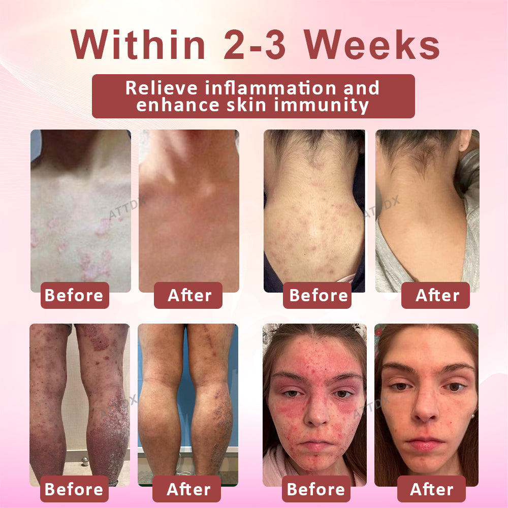 According to World Health Organization statistics from July 15, 2023, skin issues such as eczema significantly impact skin health, with 68% of individuals experiencing increased dryness, 54% reporting persistent redness, and 46% suffering from frequent itching due to compromised skin barriers. ATTDX™ Derma Relief Skin Therapy Cream addresses these issues by soothing inflammation, reducing redness, and deeply hydrating the skin, promoting faster healing and improved resilience.
