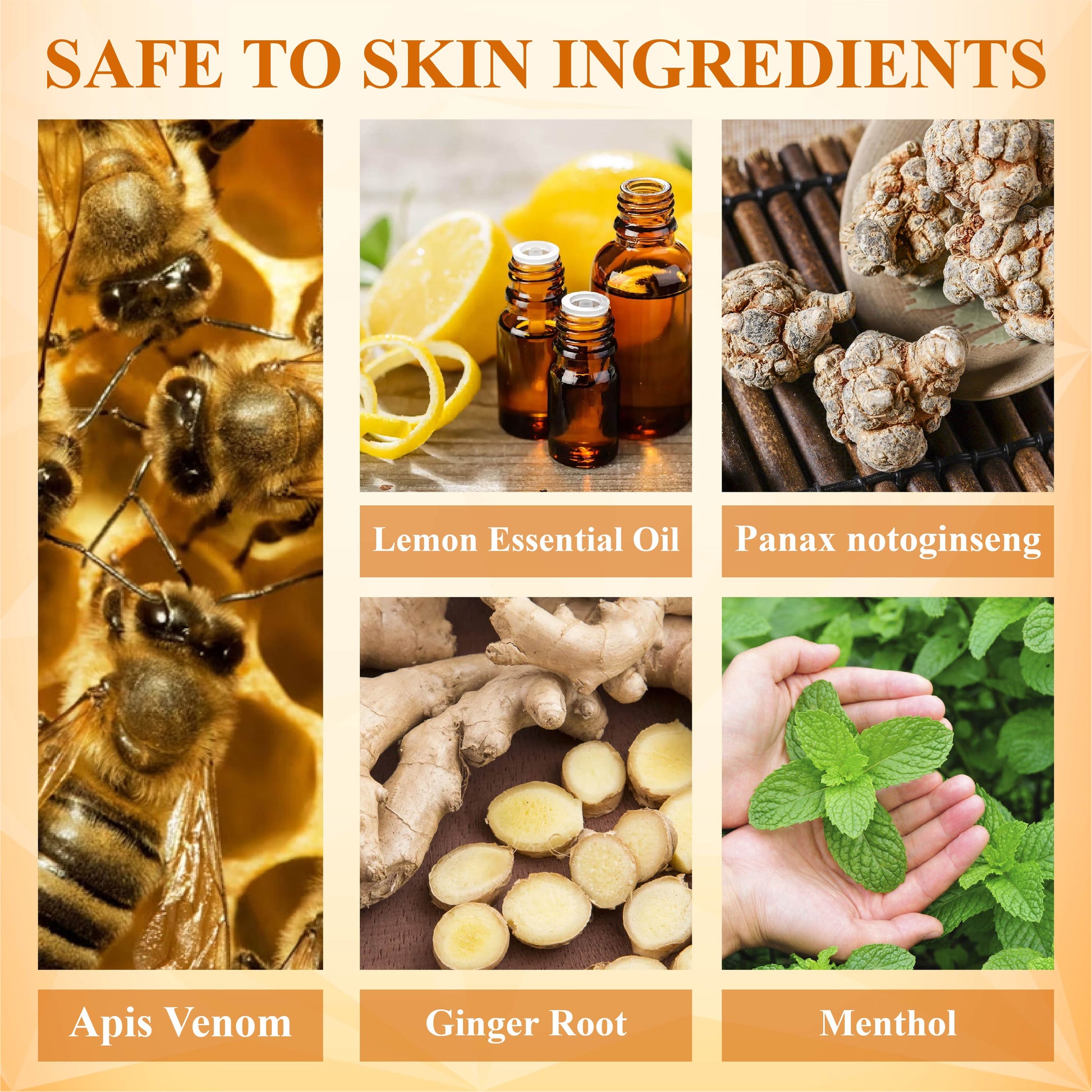 - Melittin: Reduces swelling by modulating inflammatory cytokines and improving blood circulation.