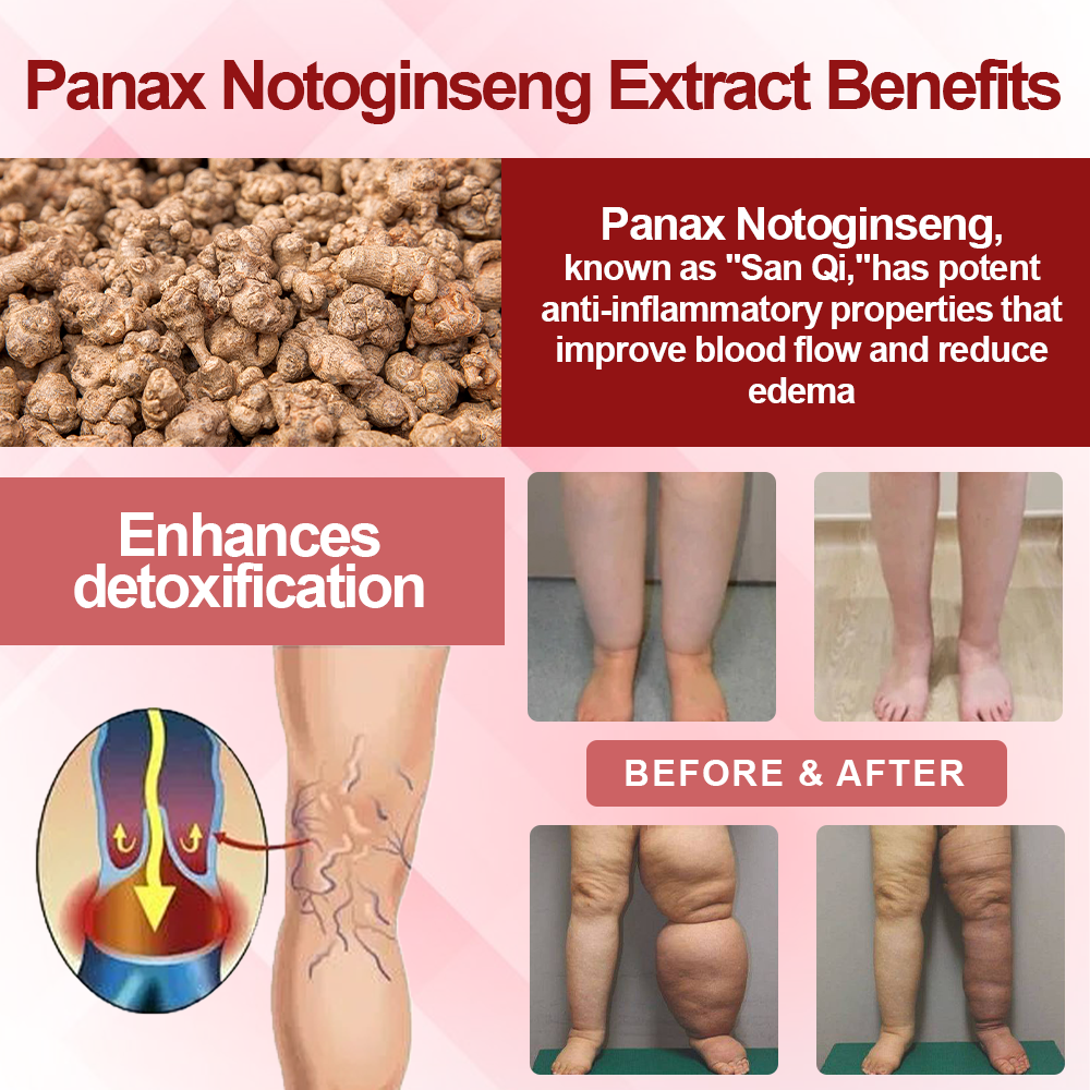 Studies indicate that the active compounds in Panax Notoginseng Extract, including ginsenosides and notoginsenosides, possess potent anti-inflammatory and circulation-enhancing properties. These compounds help reduce swelling by improving blood flow and strengthening capillary walls, preventing fluid leakage into surrounding tissues. Similarly, Angelica Root Extract, rich in ferulic acid and ligustilide, supports lymphatic health by boosting circulation, reducing fluid retention, and calming inflammation. Therefore, our DetoxFlow™ EdemaSupport Lymphatic Drainage Massage Cream formula with 5% Panax Notoginseng Extract, combined with Angelica Root Extract and two other key ingredients, effectively addresses issues such as edema, lymphatic health, and varicose veins.