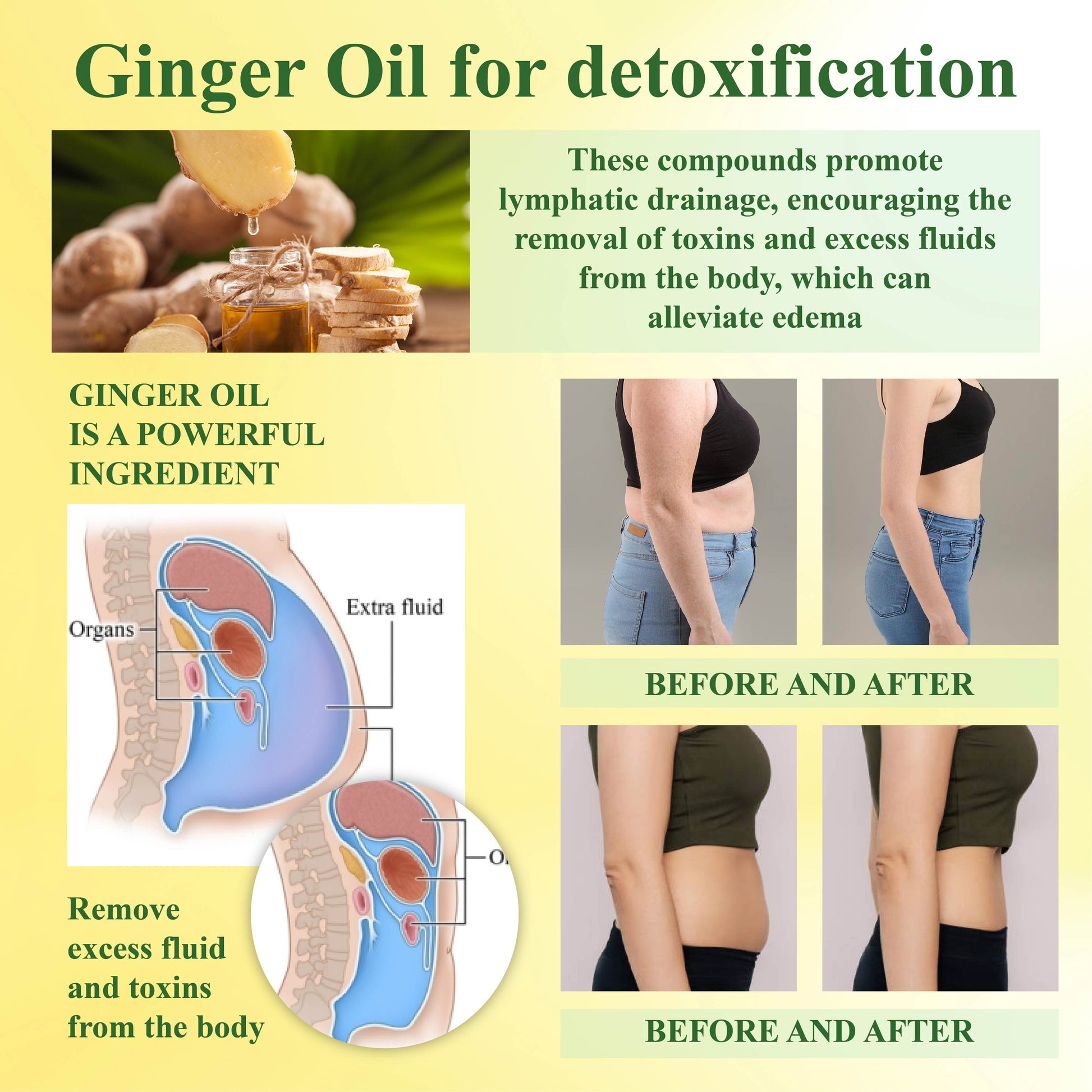 Discover the transformative power of DetoxFlow™ Lymphatic Support SwellingEase Oil, enriched with the detoxifying benefits of ginger oil. The active compounds in ginger oil, including gingerol, shogaol, and zingerone, work together to enhance lymphatic drainage, promoting the removal of toxins and excess fluids from the body. This powerful formula improves blood flow and reduces inflammation, effectively alleviating edema and supporting the smooth movement of lymphatic fluid. Ginger’s thermogenic properties stimulate metabolism, aiding in the breakdown of lipid tissue and promoting a more toned appearance while enhancing overall lymphatic efficiency.