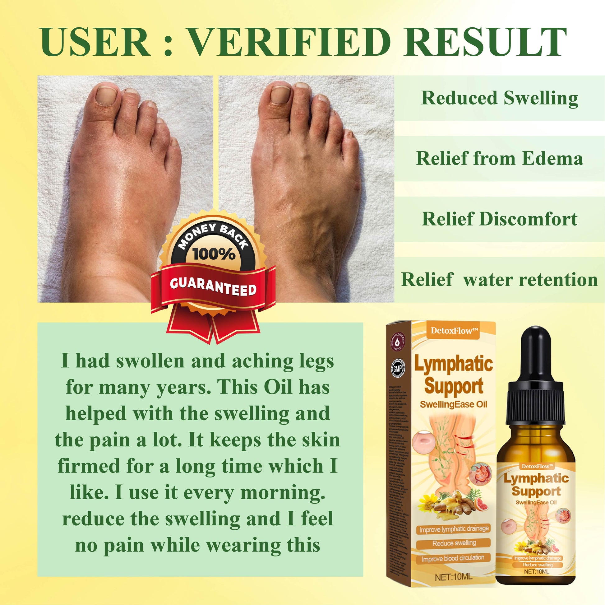 I went to the doctor and found out it was edema, but I didn’t want to rely on medication, so I searched for natural alternatives. I came across positive reviews for DetoxFlow™ Lymphatic Support SwellingEase Oil and decided to try it on September 6. After two weeks, my hands felt noticeably lighter and less puffy, the swelling had decreased so much that I could finally see my knuckles again, and my fingers had returned to their normal shape making everyday tasks like typing and zipping up my jacket a breeze.” – Megan Hayes from Portland, Oregon ⭐⭐⭐⭐⭐
