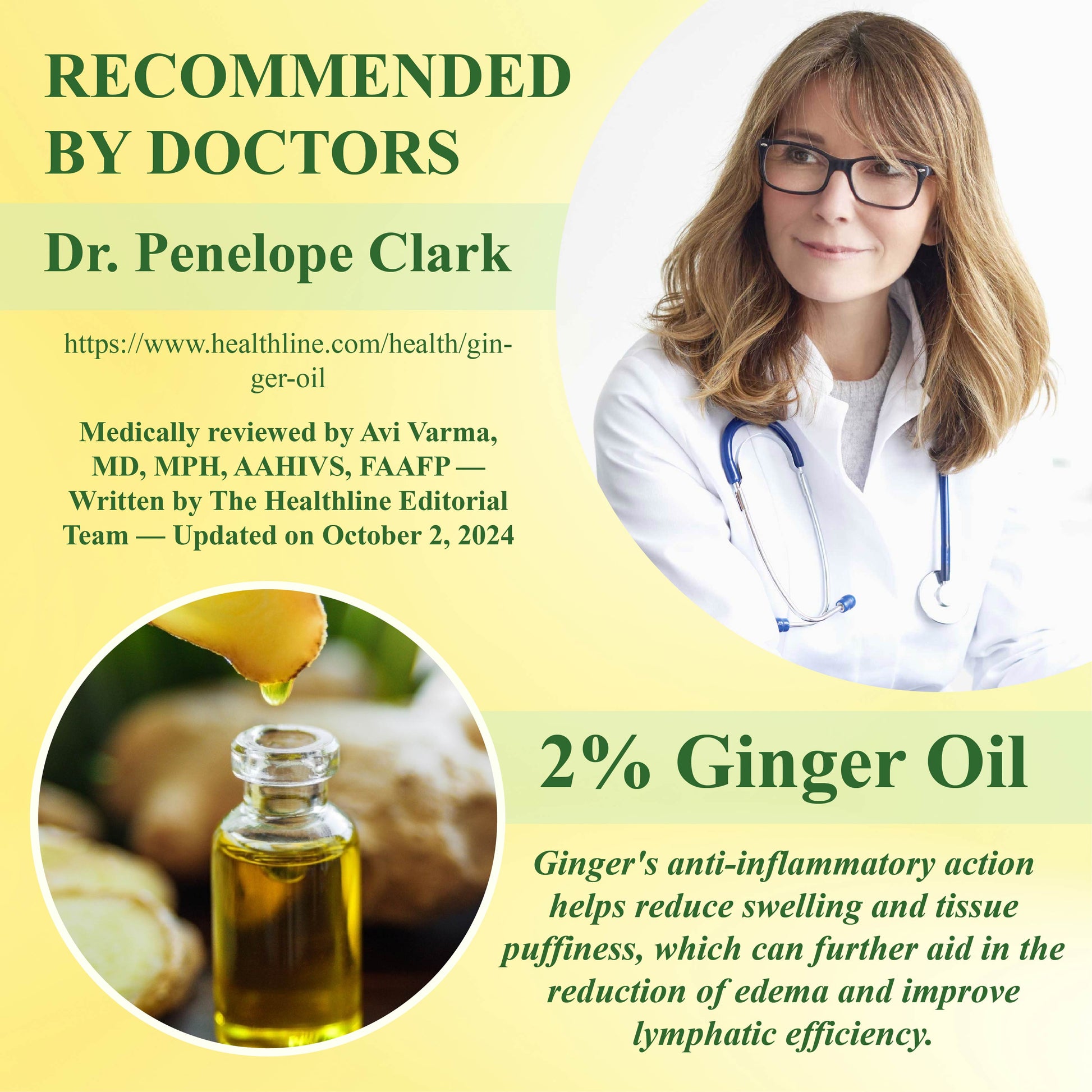 A study conducted by Dr. Penelope Clark at the Lymphatic Health Institute on May 29, 2024, evaluated the efficacy of DetoxFlow™ Lymphatic Support SwellingEase Oil, which contains 2% ginger oil. This product features two key components, gingerol and zingiberene. Gingerol has strong anti-inflammatory and antioxidant properties that enhance circulation and aid detoxification. Zingiberene improves blood flow and lymphatic drainage helping to reduce swelling and support natural detoxification processes.