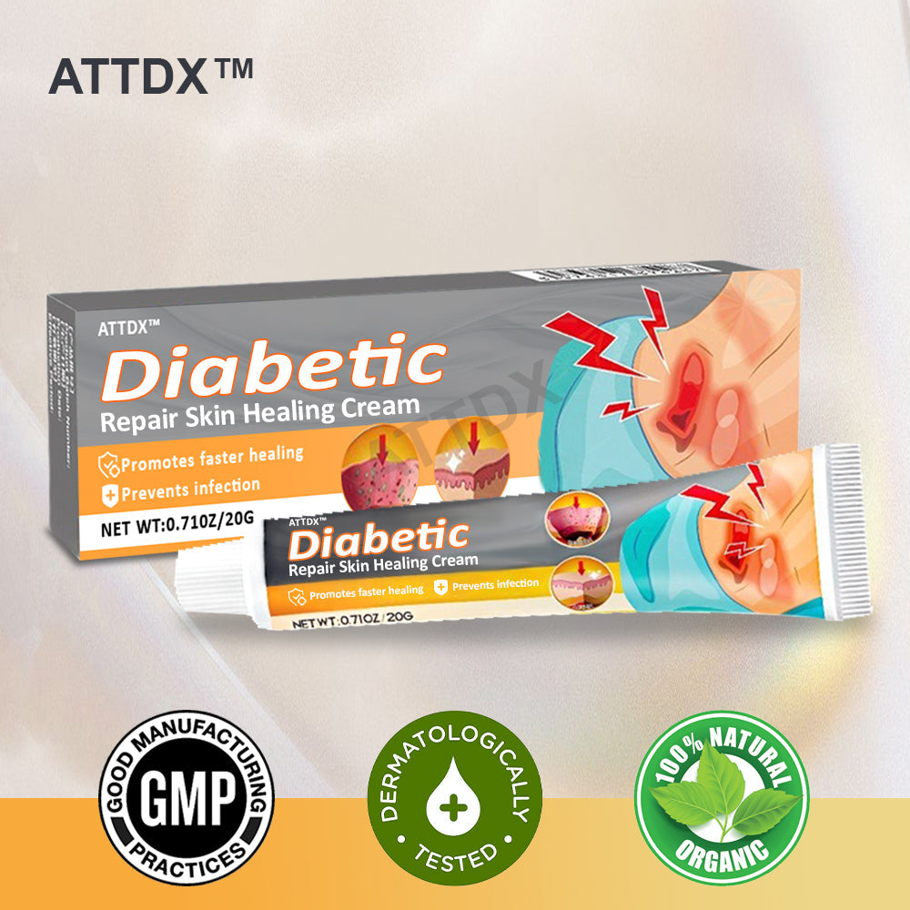 At ATTDX™, we accelerate wound healing with advanced care for diabetes-related skin issues. Our ATTDX™ Diabetic Repair Skin Healing Cream is designed to accelerate the healing of diabetes-related wounds and sores. Its advanced formula provides deep moisture and effective infection prevention, promoting faster recovery and enhanced skin health.