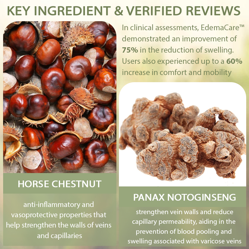 - Active Compound Aescin: Strengthens vein walls and improves vein integrity.