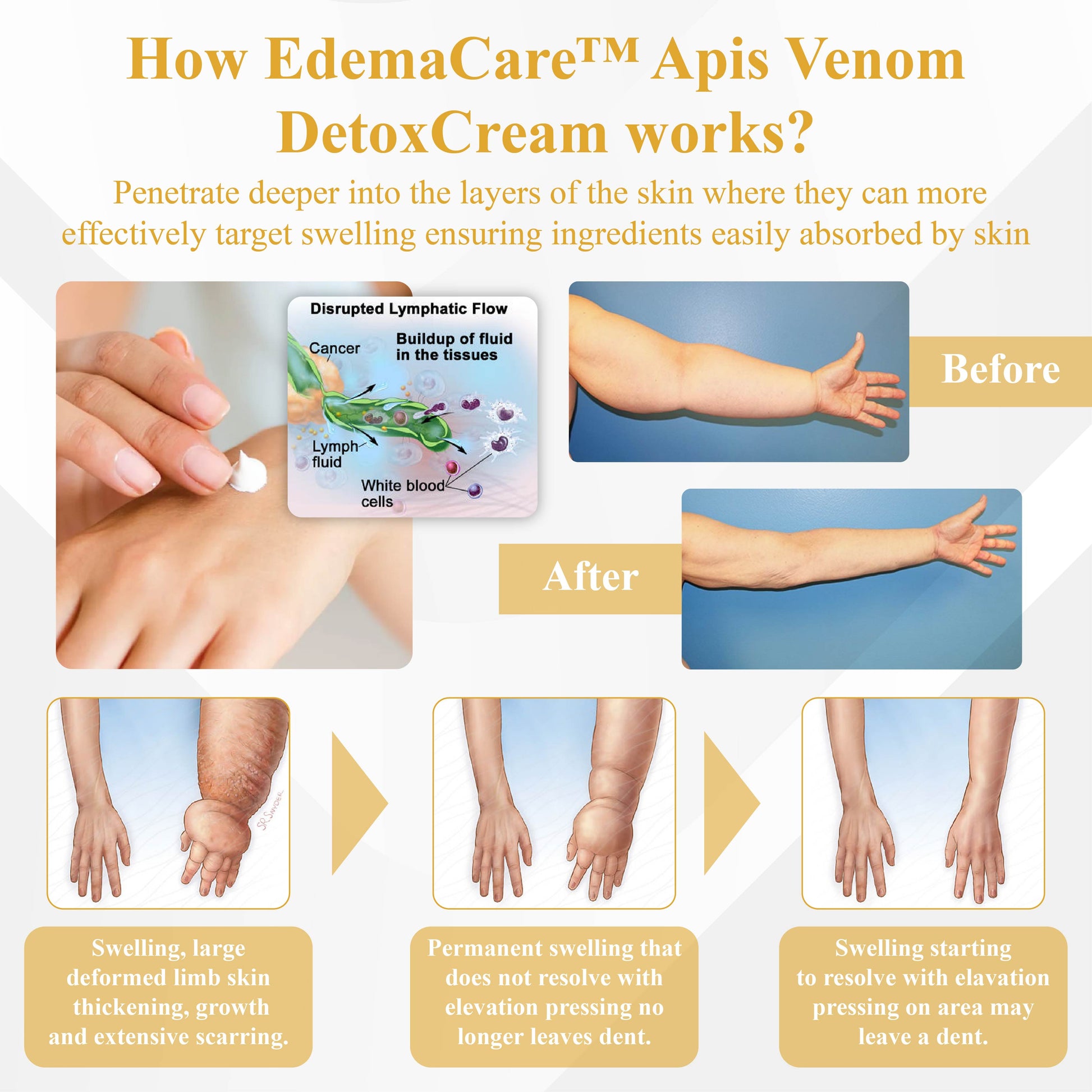 At EdemaCare™, we empower your comfort and wellness that helps you feel your best every day. Our EdemaCare™ Apis Venom DetoxCream is designed to provide fast relief from discomfort caused by swelling and strain. Its soothing formula enhances overall skin health while promoting effective lymphatic function for lasting comfort.
