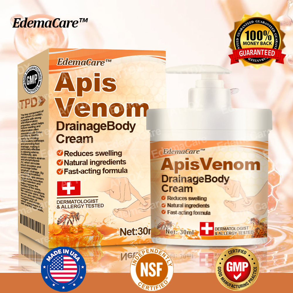 Certified by Dr. Melanie Foster, a renowned vascular specialist at the University of Health Sciences, EdemaCare™ ApisVenom DrainageBody Cream has proven to be an effective solution for managing edema. On June 16, 2024, Dr. Foster reviewed the product's performance which contains 1% Apis Venom and found that it significantly reduces swelling and promotes fluid drainage.