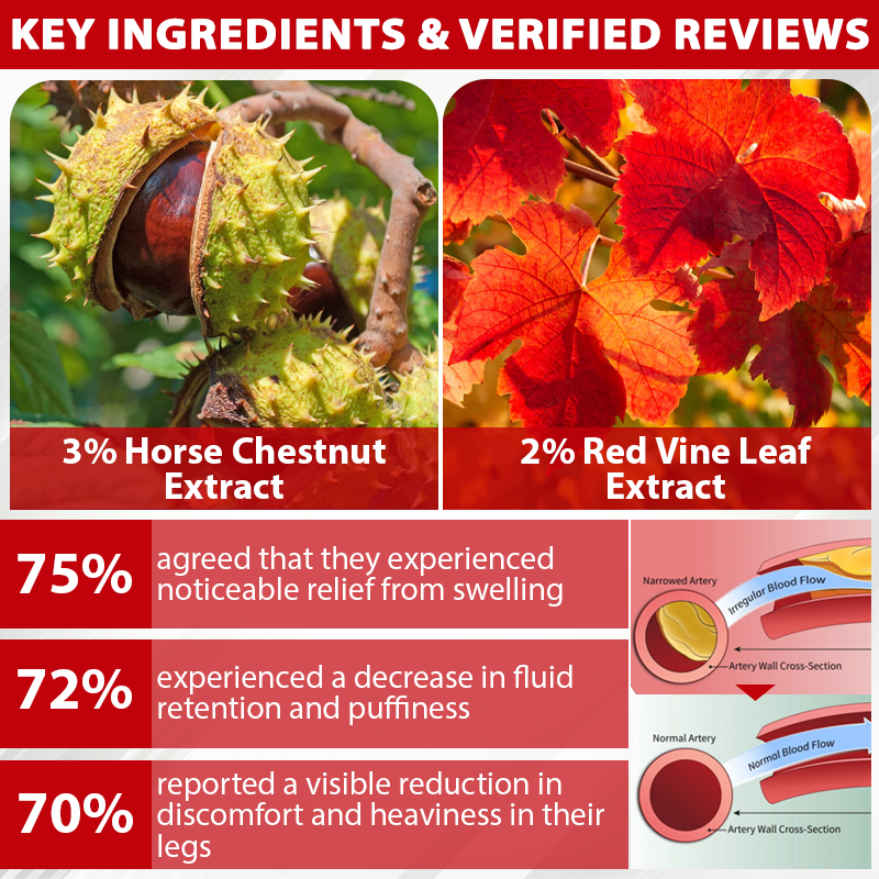 The polyphenols in the extract reduce inflammation, support blood vessel flexibility, and combat free radicals, further improving vascular health and alleviating discomfort from edema.