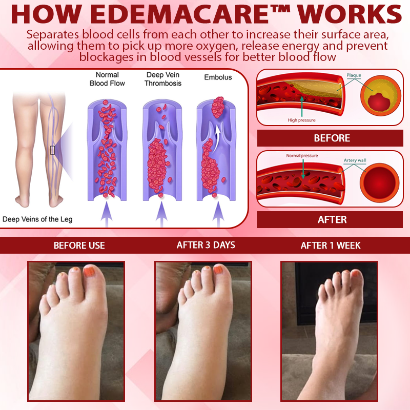 EdemaCare™ VenoLymph Massage Therapy Cream harnesses the power of key botanical extracts to deliver exceptional relief from swelling and discomfort. Panax Notoginseng Extract enhances circulation, reduces fluid retention, and strengthens capillary walls, while Angelica Root Extract improves blood flow, minimizes inflammation, and supports lymphatic drainage. Horse Chestnut Extract enhances vascular tone and reduces swelling, and Ruscus Acuminata Extract supports vein health and alleviates discomfort. Together, these ingredients work synergistically to address edema effectively, offering a natural and soothing solution for enhanced comfort and reduced swelling.