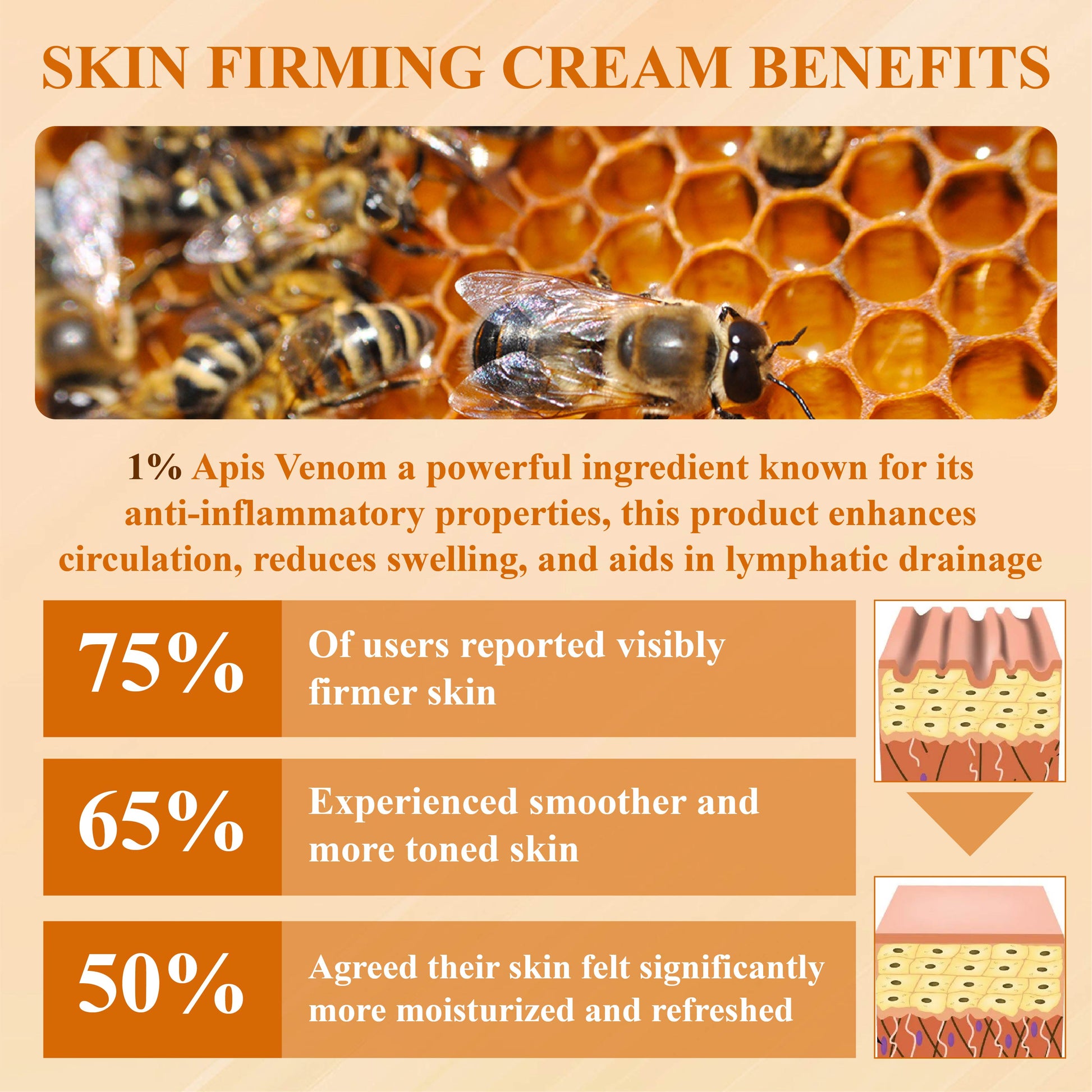 Containing 1% apis venom, a powerful ingredient known for its anti-inflammatory properties, this product enhances circulation, reduces swelling, and aids in lymphatic drainage.