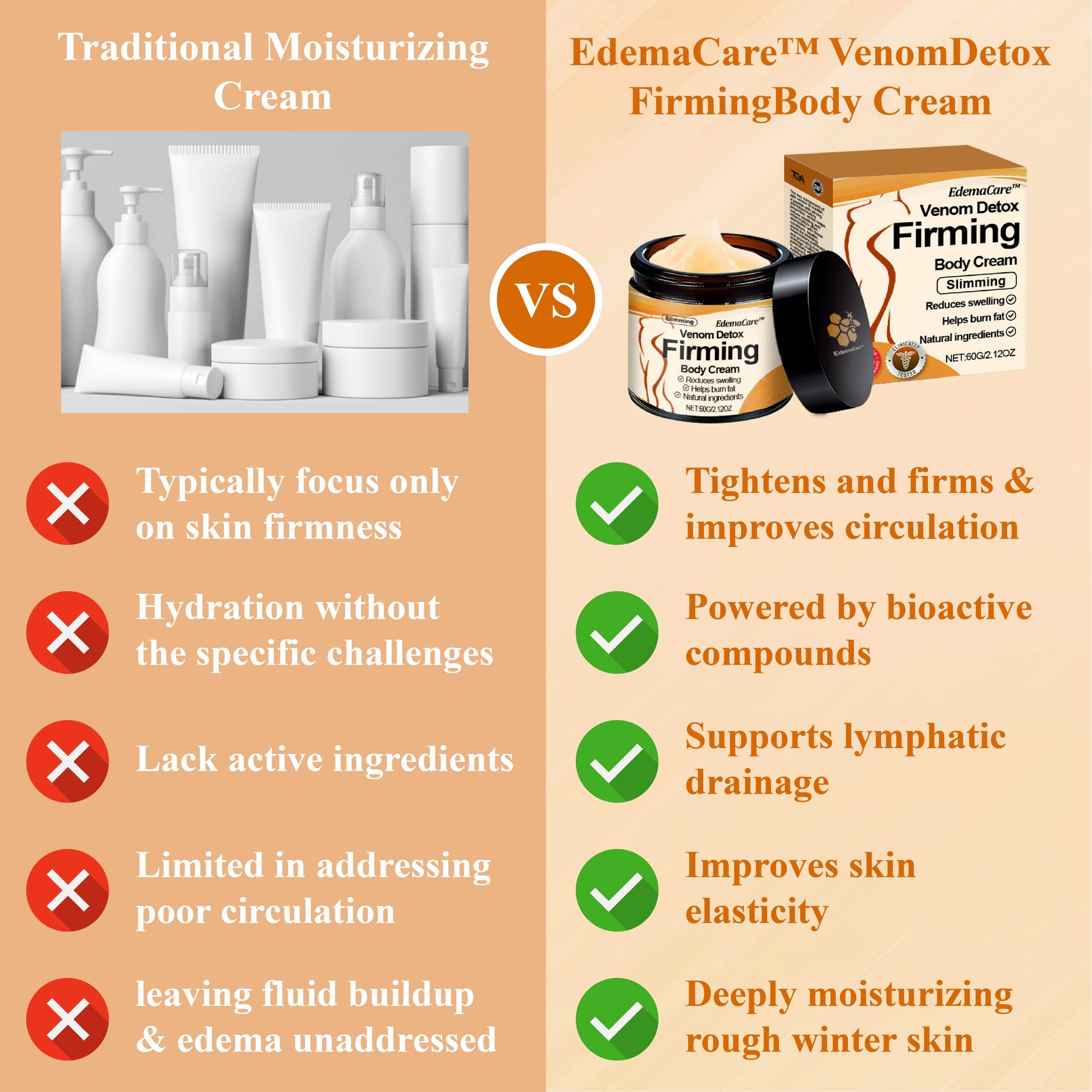 Snatch it back in less than 3 weeks with EdemaCare™ VenomDetox FirmingBody Cream, your ultimate skin-firming secret!