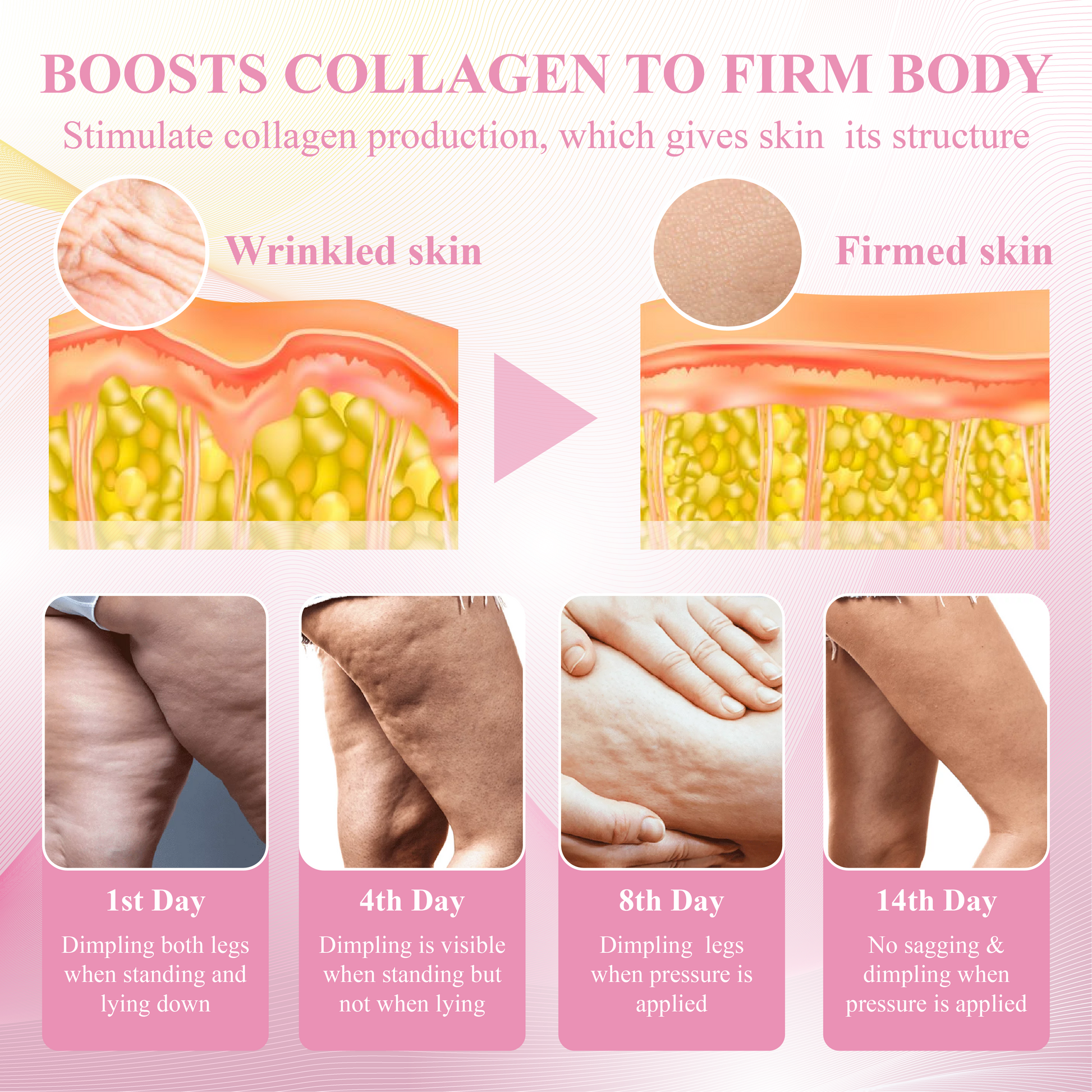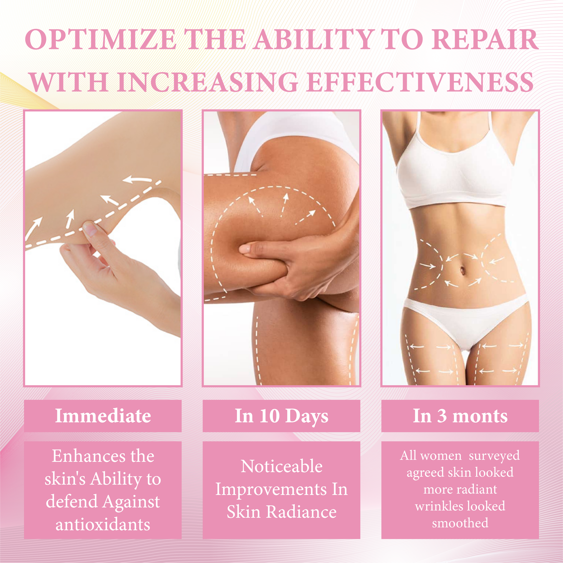 "After losing weight, the skin on my thighs started to sag, which made me very self-conscious. I decided to try this moisturiser on July 5, 2023, and by July 19, 2023, I saw about a 75% improvement in skin firmness. Within two weeks, my thighs looked more toned and the skin felt tighter and smoother. The difference this product made in such a short time is remarkable." -Ava Brooks from Seattle, Washington ⭐⭐⭐⭐⭐