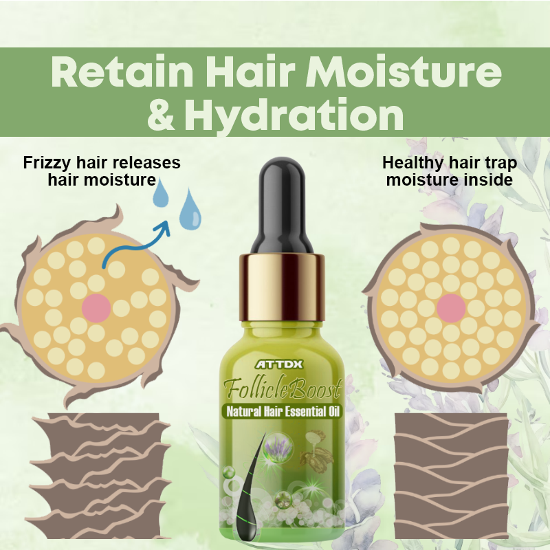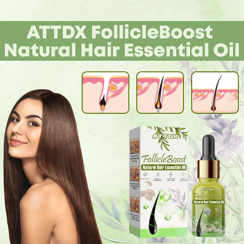Unlock the transformative power of ATTDX FollicleBoost Natural Hair Essential Oil, designed to rejuvenate and revitalize your hair from root to tip, giving you thicker, healthier, and more vibrant hair naturally