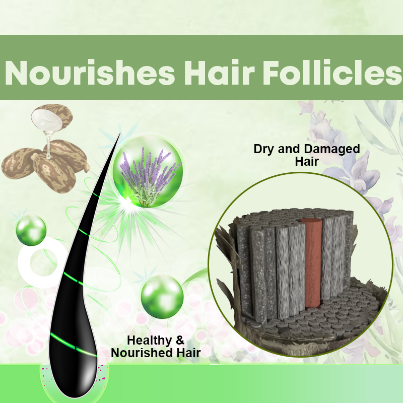 Castor Oil: Castor oil is rich in nutrients like omega-6 fatty acids and vitamin E, which nourish the hair follicles, strengthen the hair shaft, and prevent breakage. It's particularly effective in moisturizing dry, brittle hair and encouraging thicker, fuller hair growth.