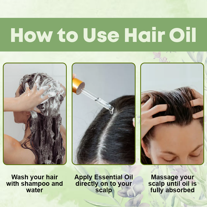 Lavender Oil: Lavender oil promotes scalp health by soothing irritation and reducing inflammation, contributing to an environment conducive to hair growth. Its natural antimicrobial properties also help maintain a clean scalp, supporting overall hair health.