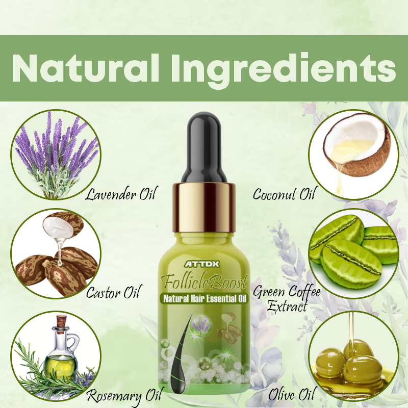 ATTDX FollicleBoost Natural Hair Essential Oil utilizes the powerful benefits of Lavender Oil to stimulate hair growth effectively. Lavender Oil is known for its ability to nourish and strengthen hair follicles, promoting thicker and healthier hair over time. With this essential ingredient, our formulation supports optimal scalp health for visibly improved hair vitality.