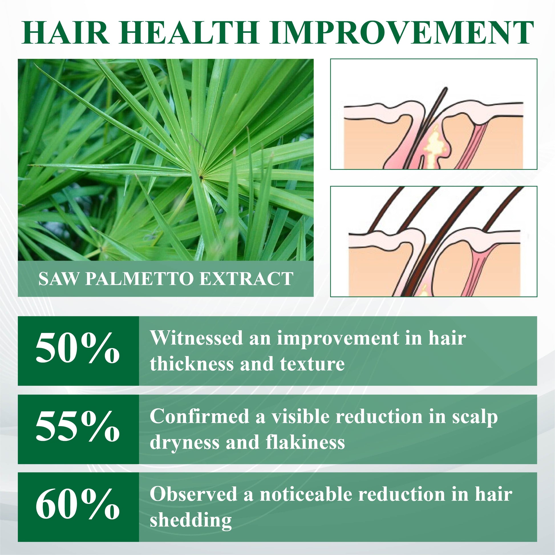 Dr. Taggart's research indicates that the product has shown a 40% improvement in hair density and a 50% reduction in hair shedding within a few weeks of consistent use. The Saw Palmetto Extract works by blocking DHT, a hormone responsible for hair thinning. This advanced formula provides a holistic approach to hair regrowth, offering a promising yet non-invasive solution for individuals looking to address hair loss effectively.