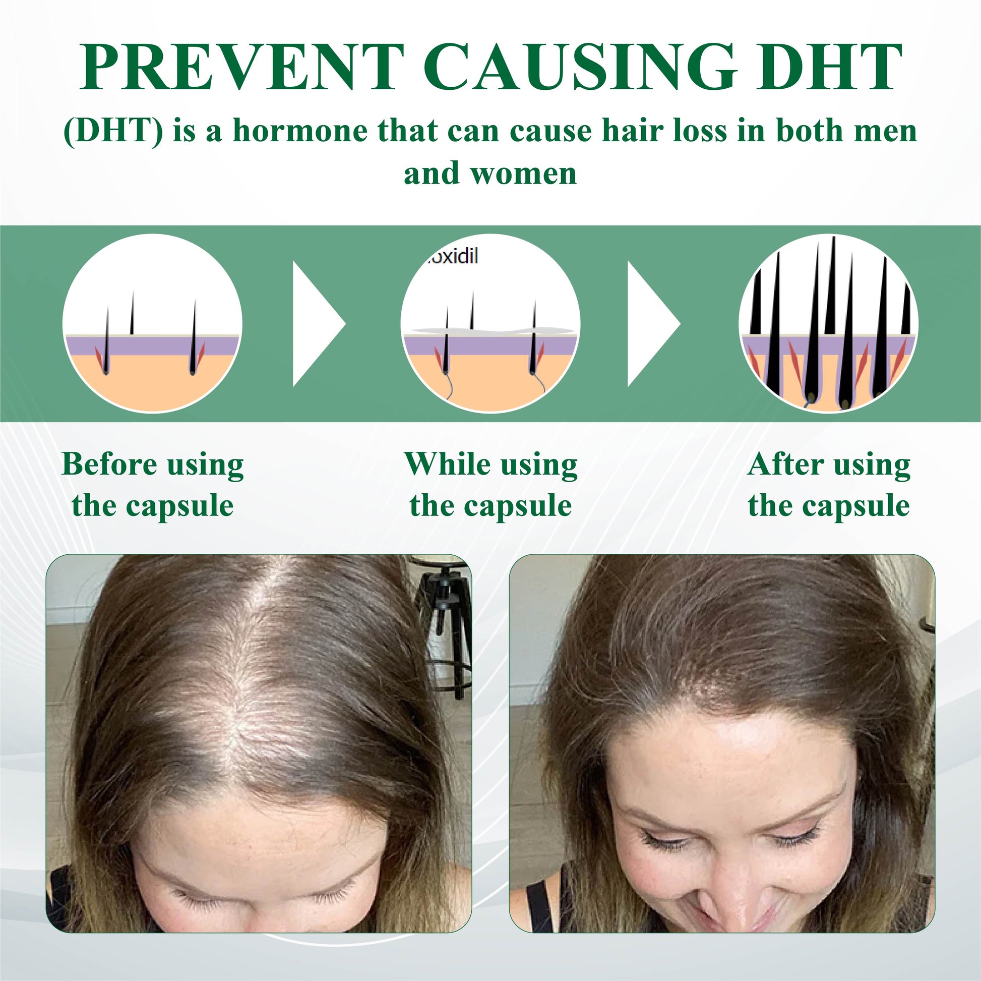 This product contains 320 mg of Saw Palmetto Extract in a single capsule which helps maintain hair follicle health, slow down hair loss, and may promote thicker and healthier hair growth. The serum inside the capsules promotes hair regrowth by nourishing the scalp and stimulating the natural hair growth cycle.