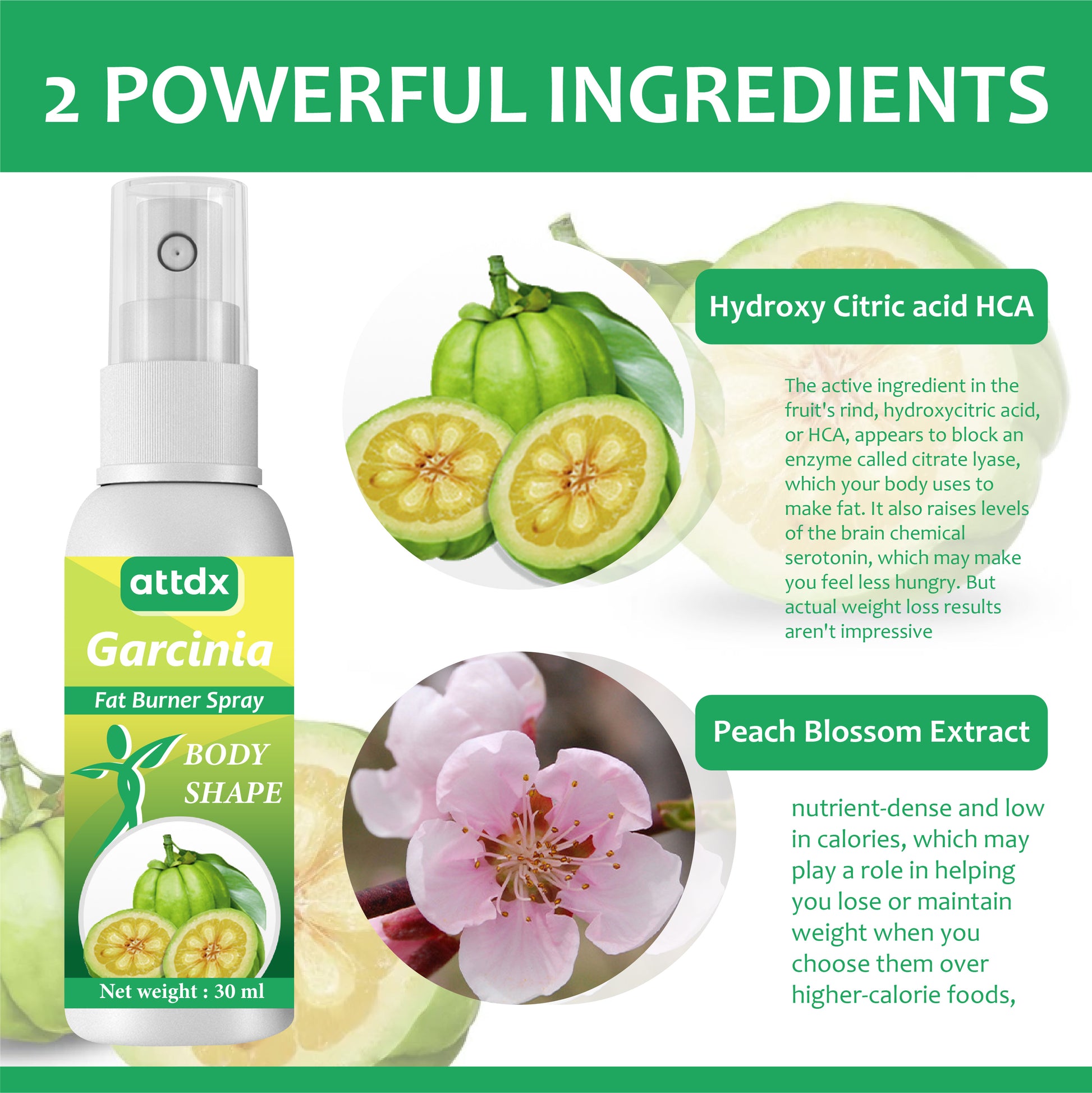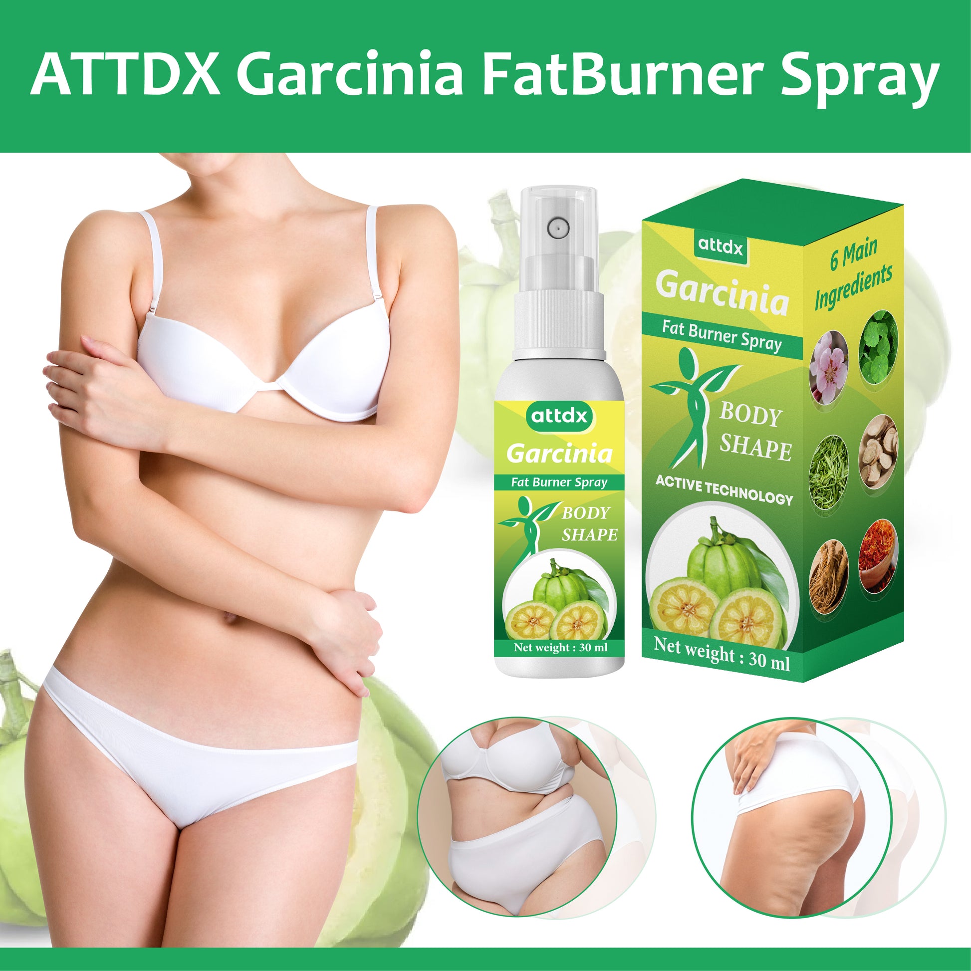 Transform your body with the natural power of ATTDX Garcinia FatBurner Spray, harnessing the benefits of Garcinia for effective weight management and enhanced vitality