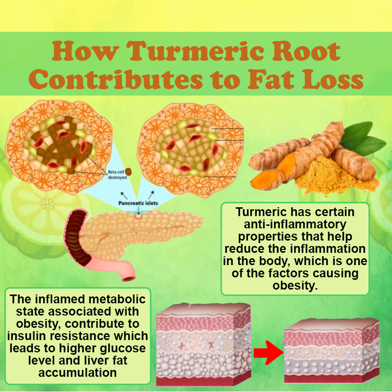 Turmeric Root: The active compound in turmeric root, curcumin, modifies the structure of adipocytes, making them more susceptible to breakdown. Extensive research underscores curcumin's role in transforming unhealthy fat cells into healthier variants, contributing to a range of health benefits.