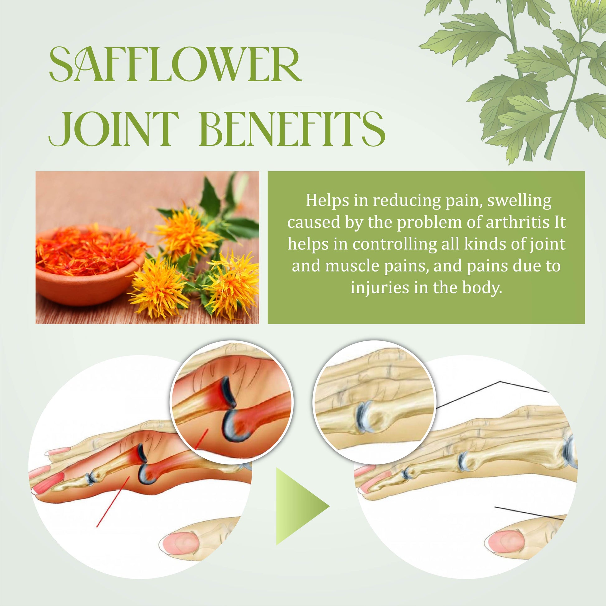 Safflower extract aids joint health by enhancing circulation, facilitating nutrient delivery to joint tissues, and promoting tissue repair. These actions contribute to improved joint flexibility and mobility over time.
