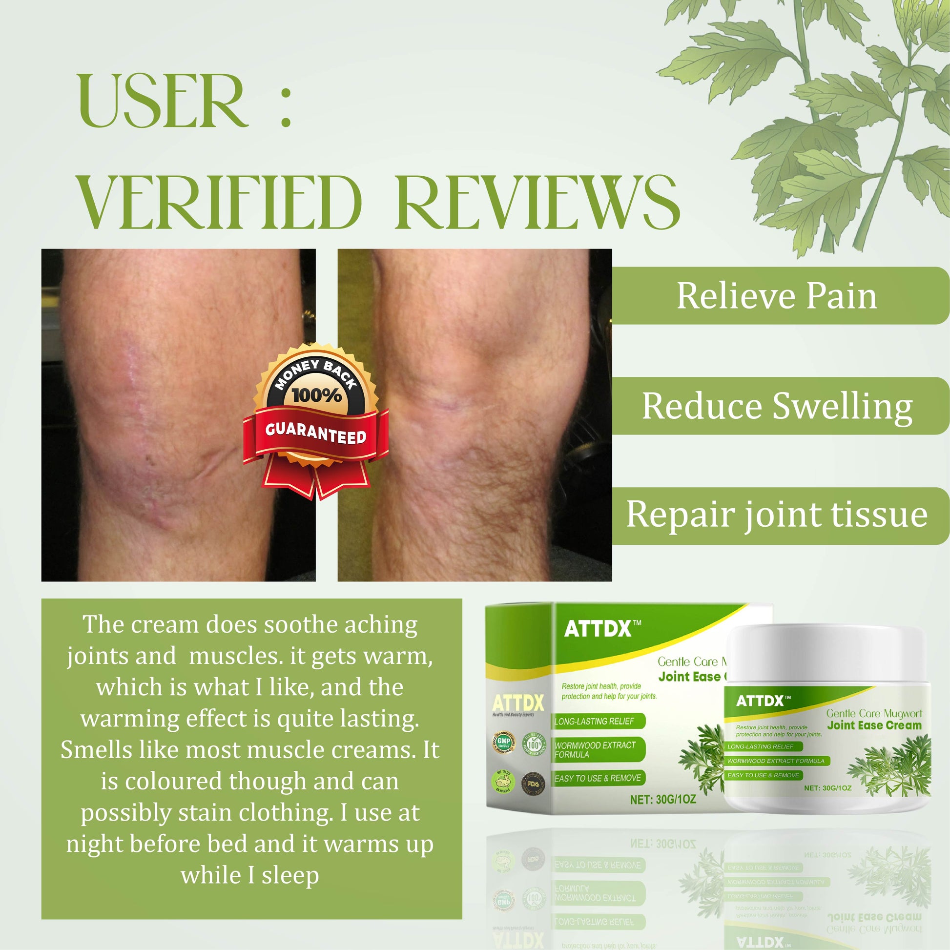 Not until I discovered ATTDX GentleCare Mugwort JointEase Cream, a solution for my persistent joint pain. Upon researching mugwort's renowned natural anti-inflammatory properties and its historical use in enhancing joint mobility, I decided to give this cream a try. To my delight, within just a month of consistent use, I experienced noticeable relief, significantly reducing my joint discomfort and improving my overall mobility, making daily activities much more manageable and enjoyable.