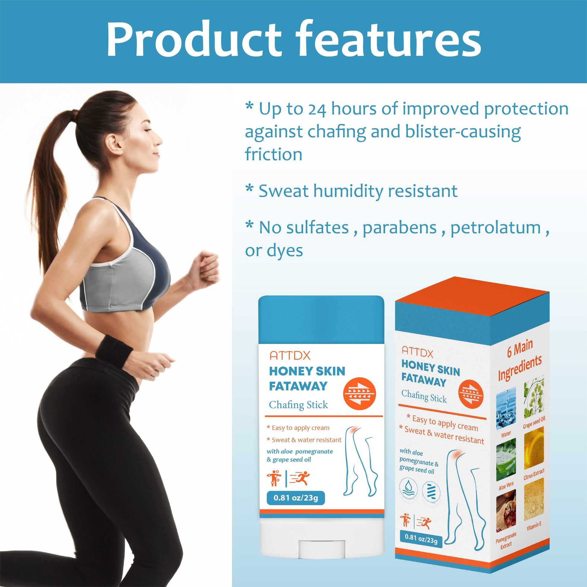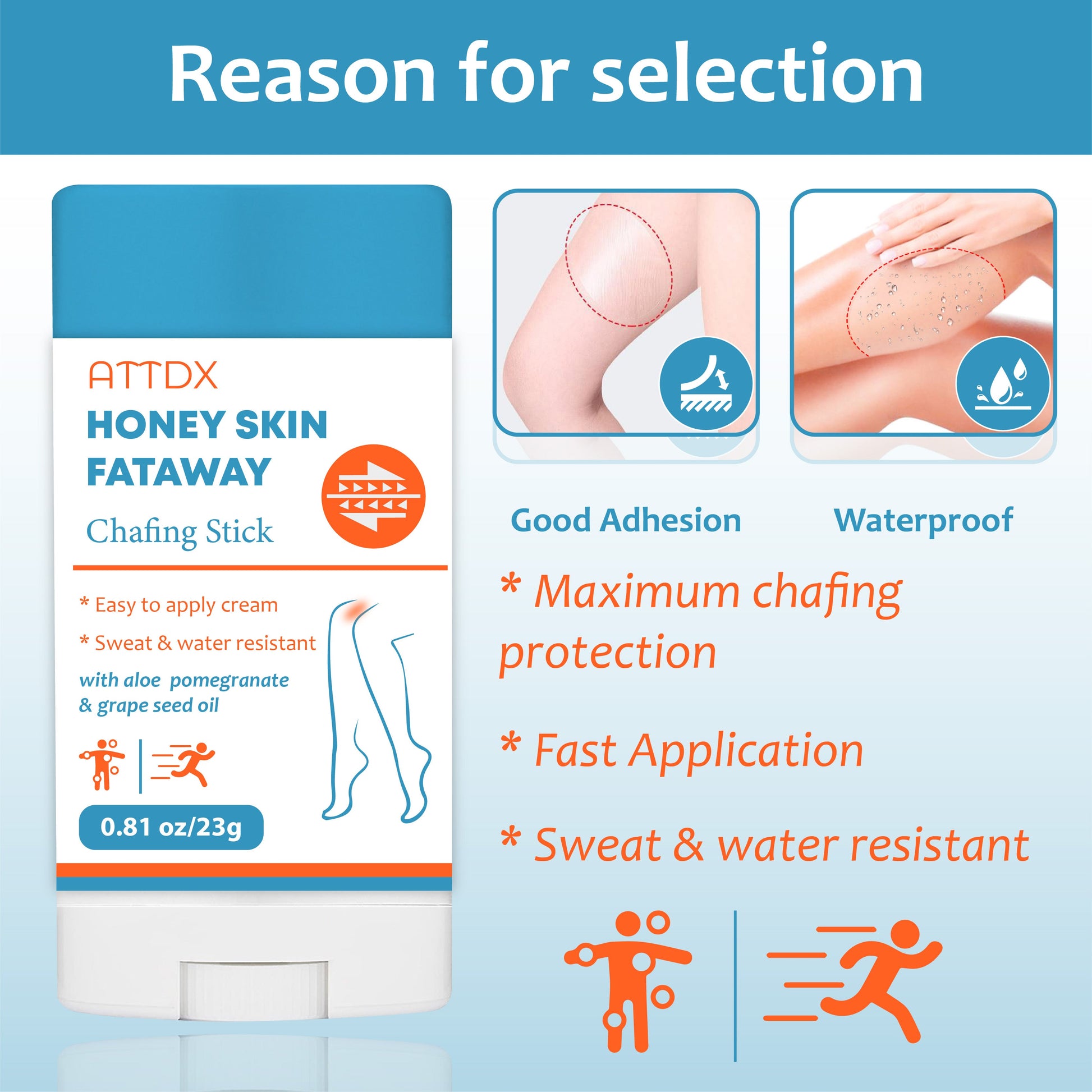 At ATTDX, we deliver ultimate comfort and protection for your active lifestyle. Our ATTDX HoneySkin FatAway Chafing Bar offers superior protection against chafing with its waterproof formula and excellent adhesion, ensuring all-day comfort. Its unique blend of soothing ingredients not only prevents irritation but also supports fat metabolism for a smoother, healthier skin experience.