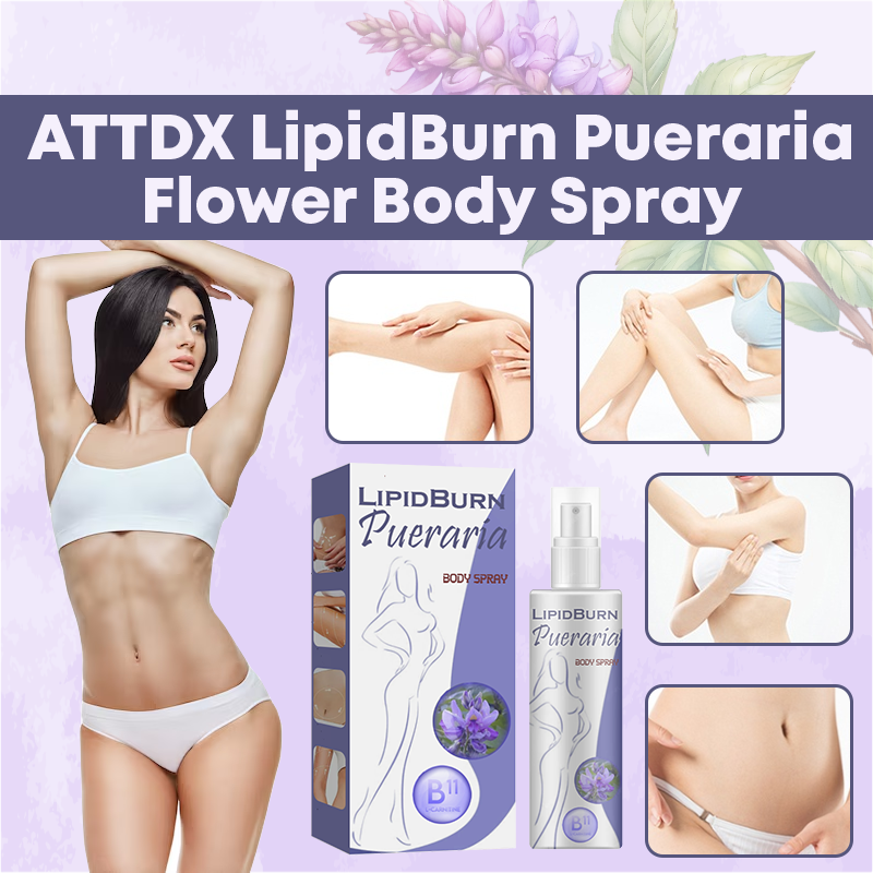 Elevate your wellness journey with ATTDX LipidBurn Pueraria Flower Body Spray, a transformative blend crafted to enhance your body's natural vitality and tone