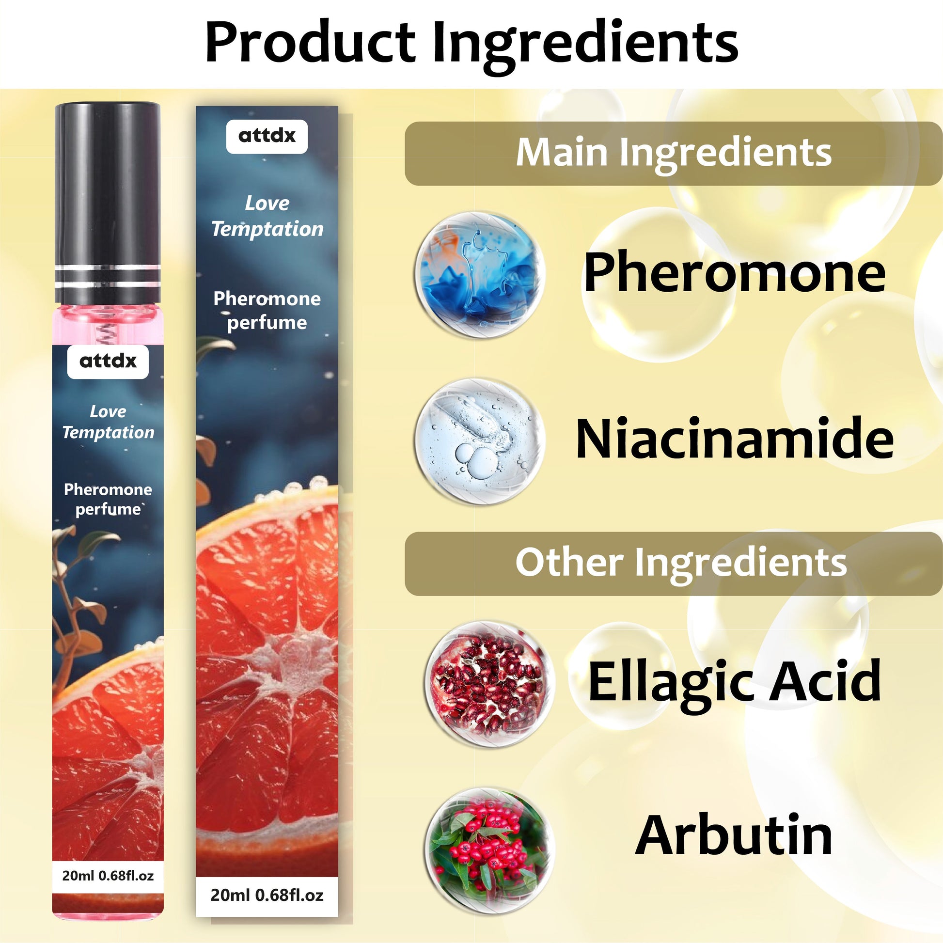 Pheromones. Pheromones in ATTDX LoveTemptation Pheromone perfume evoke attraction and desire, enhancing the wearer's allure and social presence.