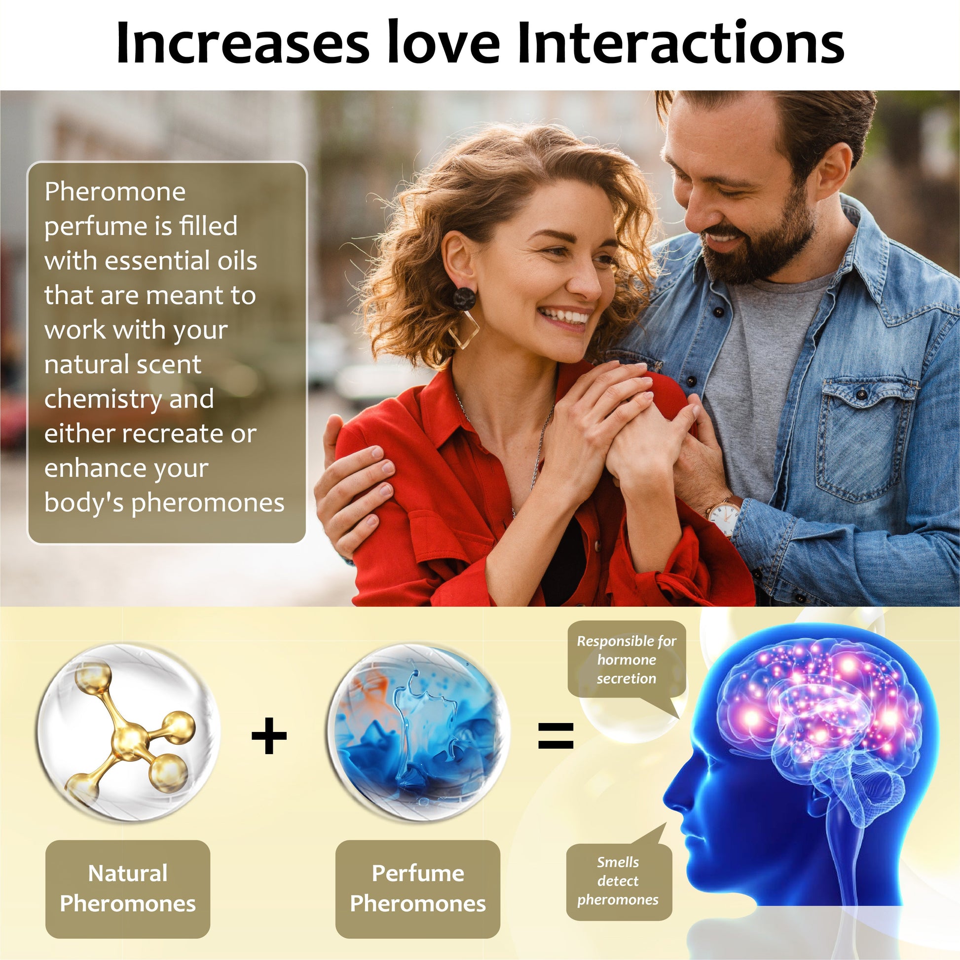 Pheromones, particularly androstadienone, have shown great promise in research, being present in male sweat and other bodily secretions, and are known to enhance mood and focus. A recent study by Dr. Martha Kent McClintock, a distinguished psychologist and expert in human pheromones and sexual behavior from the University of Chicago, reveals promising findings on the role of androstadienone in enhancing mood, focus, and attraction. This compound plays a crucial role in women's sexual response and satisfaction by elevating mood and boosting confidence. Furthermore, pheromones can stabilize and prolong the fragrance, creating a unique scent signature that makes the wearer more memorable and distinctive. Preliminary evidence suggests that androstadienone also influences mate selection by enhancing the perceived attractiveness of potential mates' facial and bodily features. The methodologies used to study pheromones are also evolving, aiming to introduce these compounds subliminally in controlled environments without disclosing the study's purpose. Our product consists of 1% pheromones, ensuring optimal effectiveness in enhancing mood, focus, and attraction. This formulation gives long-lasting effects, making the wearer more memorable and distinctive while promoting a positive social interaction experience.