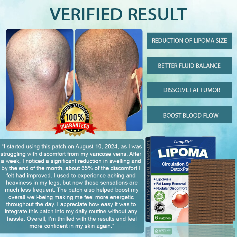 I decided to try LumpFix™ Circulation Support DetoxPatch on September 13, hoping it would help. After just a couple of weeks, I noticed some improvement, the lump seemed less noticeable. By the end of the month, there was a 60% reduction in size and my shoulder felt much less tense. It’s made a real difference and I’m excited to see even more progress!” –Zoe Henderson from San Diego, California ⭐⭐⭐⭐⭐