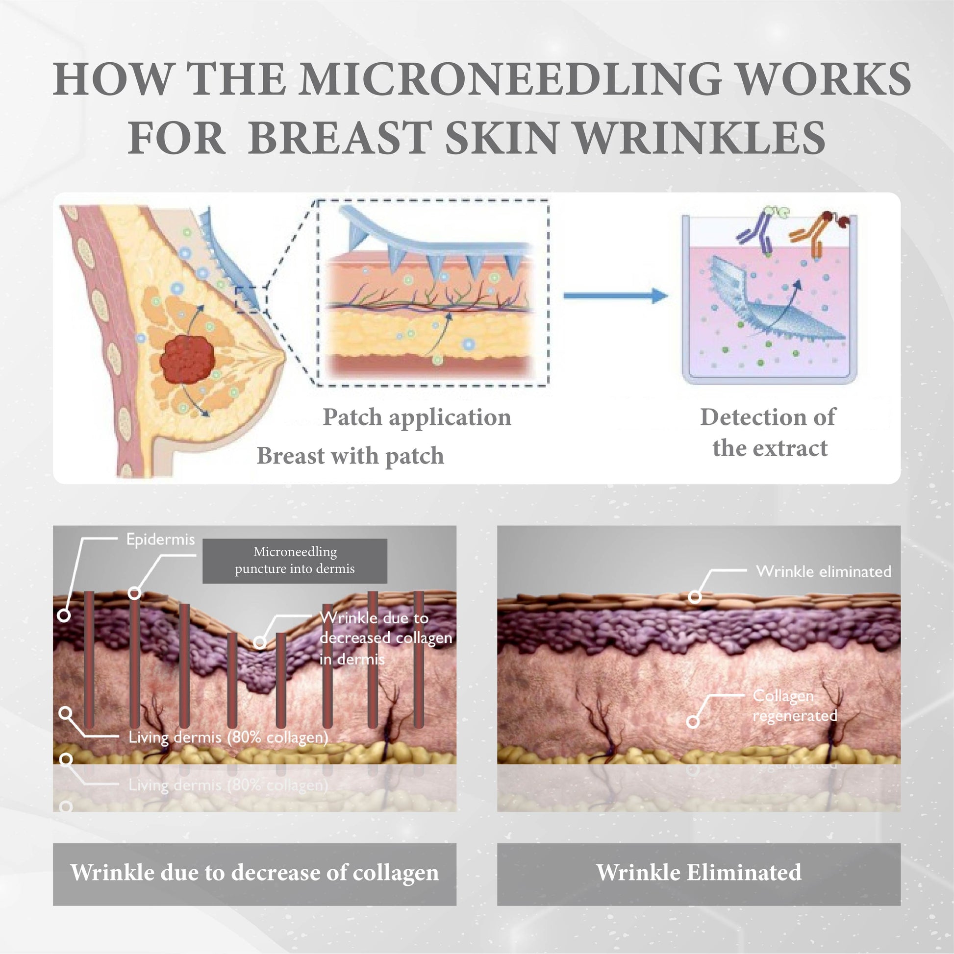 I bumped into these patches, and upon researching their benefits, I learned that microneedling not only enhances skin elasticity and texture but also promotes a balanced complexion by regulating melanin production. The patches stimulate the renewal of skin cells, visibly lifting and revitalizing my bust area. After using them for several weeks, I'm impressed with the results, my bust feels smoother, firmer, and visibly lifted, significantly boosting my confidence.