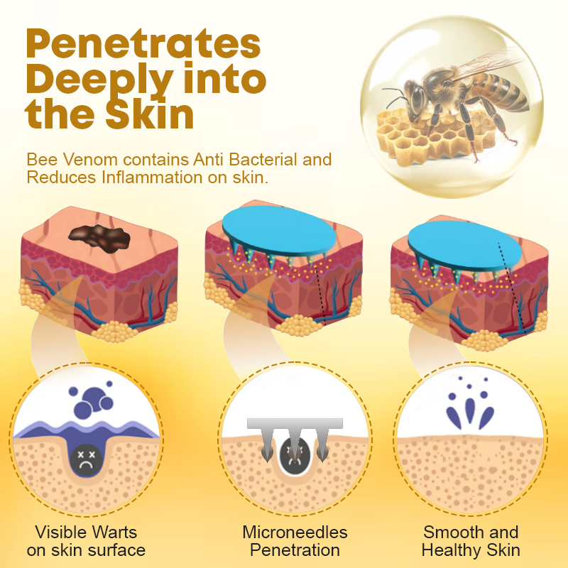 Bee venom has demonstrated promising benefits for mole and wart removal, thanks to its unique natural compounds that effectively break down unwanted skin growths, leading to their gradual reduction over time. A recent study conducted by Dr. Haejoong Kim, a dermatologist renowned for his expertise in natural treatments, highlights these significant advantages. The venom's powerful anti-inflammatory properties help reduce swelling and redness, enhancing comfort throughout the treatment process. Produced by New Zealand bees, bee venom rapidly fuses with human skin tissue, allowing it to effectively inhibit the proliferation of keratinocytes within warts while swiftly destroying the existing skin cells. This process results in gradual discoloration and eventual shedding of the wart within just one to two weeks. The active biological proteins found in bee venom, known as bee venom peptides, play a crucial role in this action. Bee venom's antimicrobial properties significantly lower the risk of infections in treated areas, ensuring a safer and more effective healing process while also boosting the immune response. This dual action not only assists the body in naturally eliminating warts but also provides protection against future occurrences. As a non-invasive option, bee venom offers a gentle alternative to more aggressive surgical methods, making it an attractive choice for those seeking effective skin care solutions. With its combination of anti-inflammatory, antimicrobial, and immune-boosting properties, bee venom provides a comprehensive and reliable solution for skin health. Our product contains 1% bee venom, ensuring a potent and effective treatment specifically designed for moles and warts. With continuous use, individuals may experience significant and lasting improvements in their skinâs overall appearance and health, paving the way for greater confidence and a renewed sense of well-being.