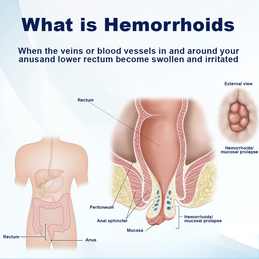 Hemorrhoids are caused by dilated and congested blood vessels in the rectal or anal area, often exacerbated by prolonged sitting, obesity, and other factors. Symptoms include bleeding, pain, and itching, with bleeding affecting up to 40% of individuals. These issues can also lead to significant mental health challenges, with about 25% of people experiencing anxiety and depression as a result. The World Health Organization estimates that up to 36% of the global population suffers from hemorrhoids. Related conditions such as anal fissures affect around 15% of people, while anal fistulas, warts, eczema, and tumors can further complicate the situation.