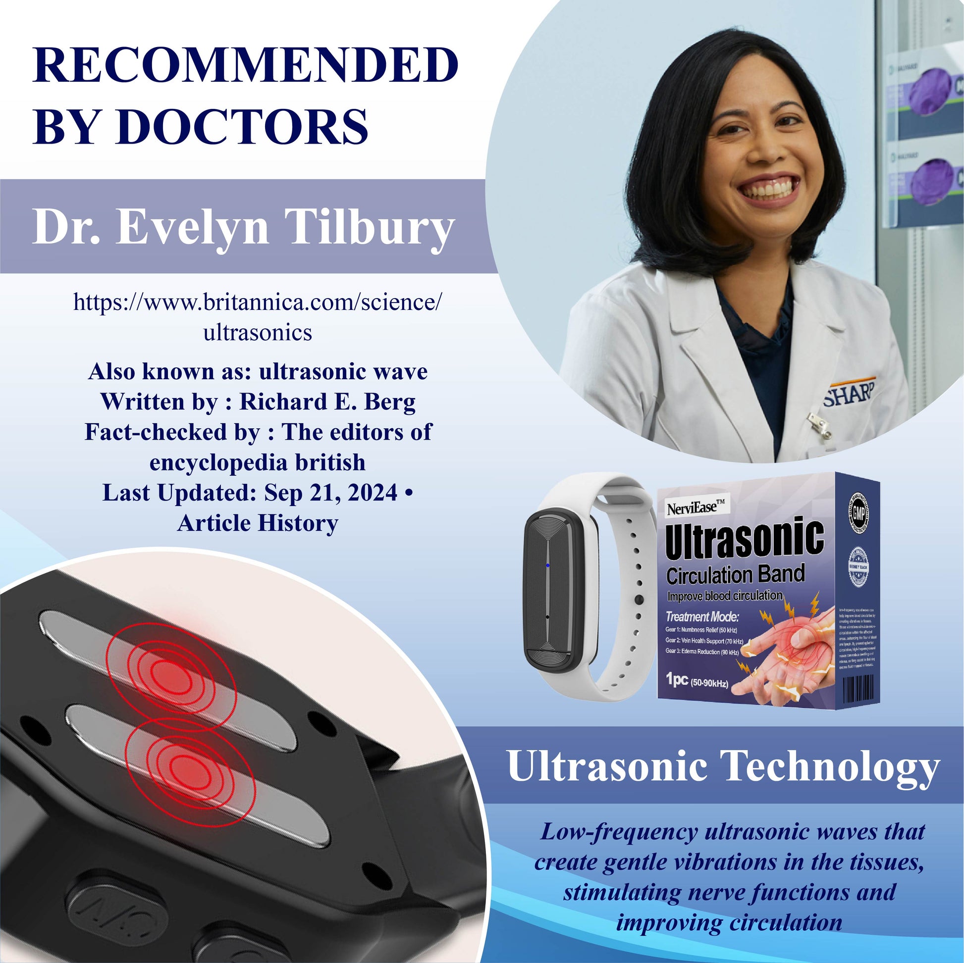 A study review was conducted on the NerviEase™ Ultrasonic Circulation Band, led by Dr. Evelyn Tilbury at the Health and Wellness Institute on July 7, 2024. This innovative device is empowered with ultrasonic technology emitting low-frequency ultrasonic waves that produce gentle vibrations in the tissues effectively stimulating nerve endings to improve microcirculation and increase blood flow.