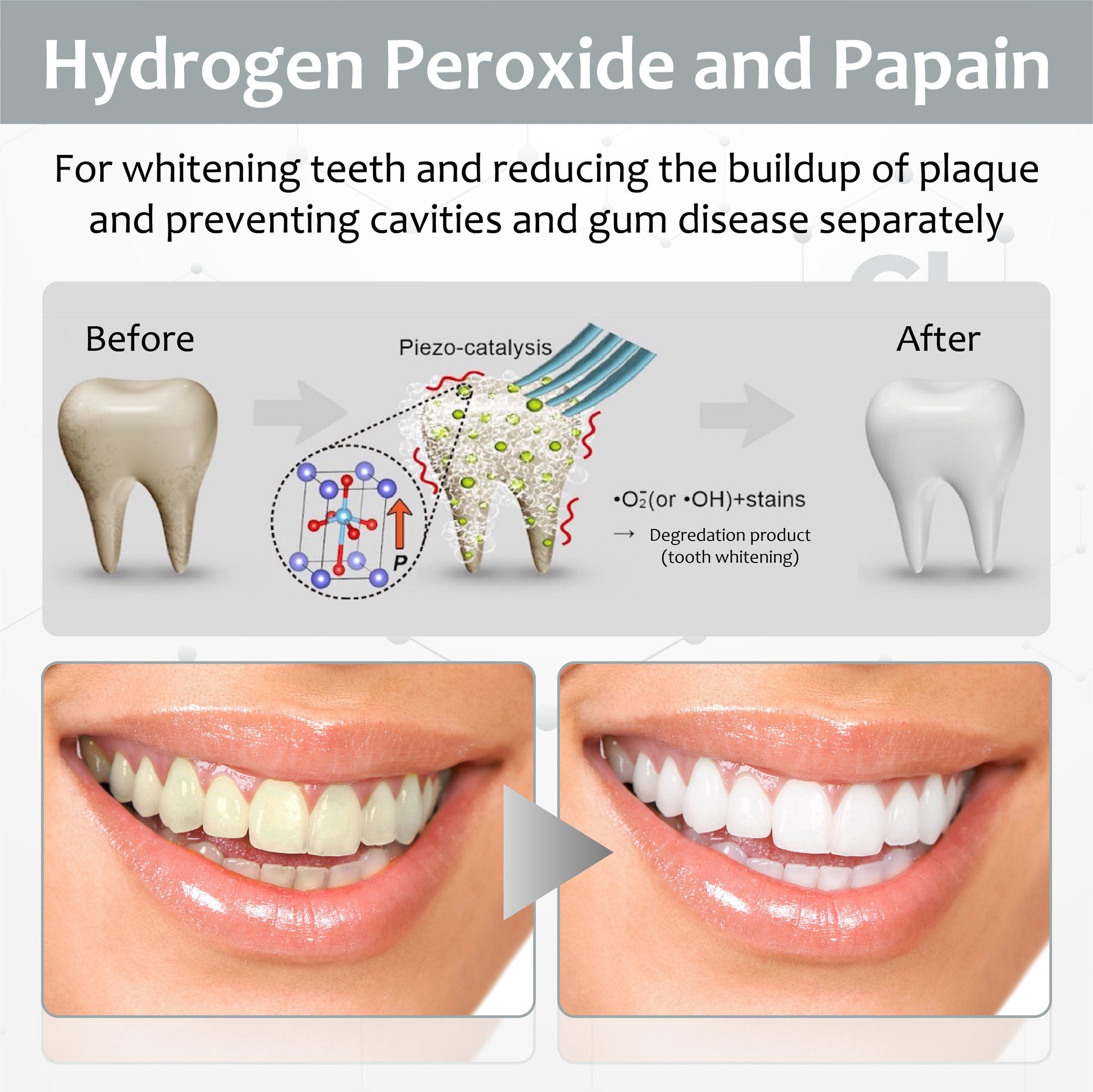 Experience a brighter smile and fresh breath with our innovative oral care solution, harnessing the power of hydrogen peroxide. Acting as a potent tooth whitener, hydrogen peroxide releases oxygen molecules that penetrate deep into enamel and dentin, effectively breaking down stains caused by aging, coffee, tea, and smoking. Beyond enhancing your smile, this formula also targets halitosis, ensuring not only a radiant smile but also long-lasting oral freshness.