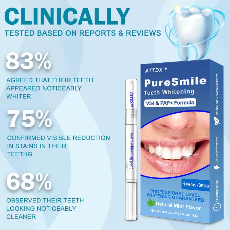 Get a dazzling smile effortlessly with ATTDX™ PureSmile Teeth Whitening Pen—your on-the-go solution for a radiant and confident smile