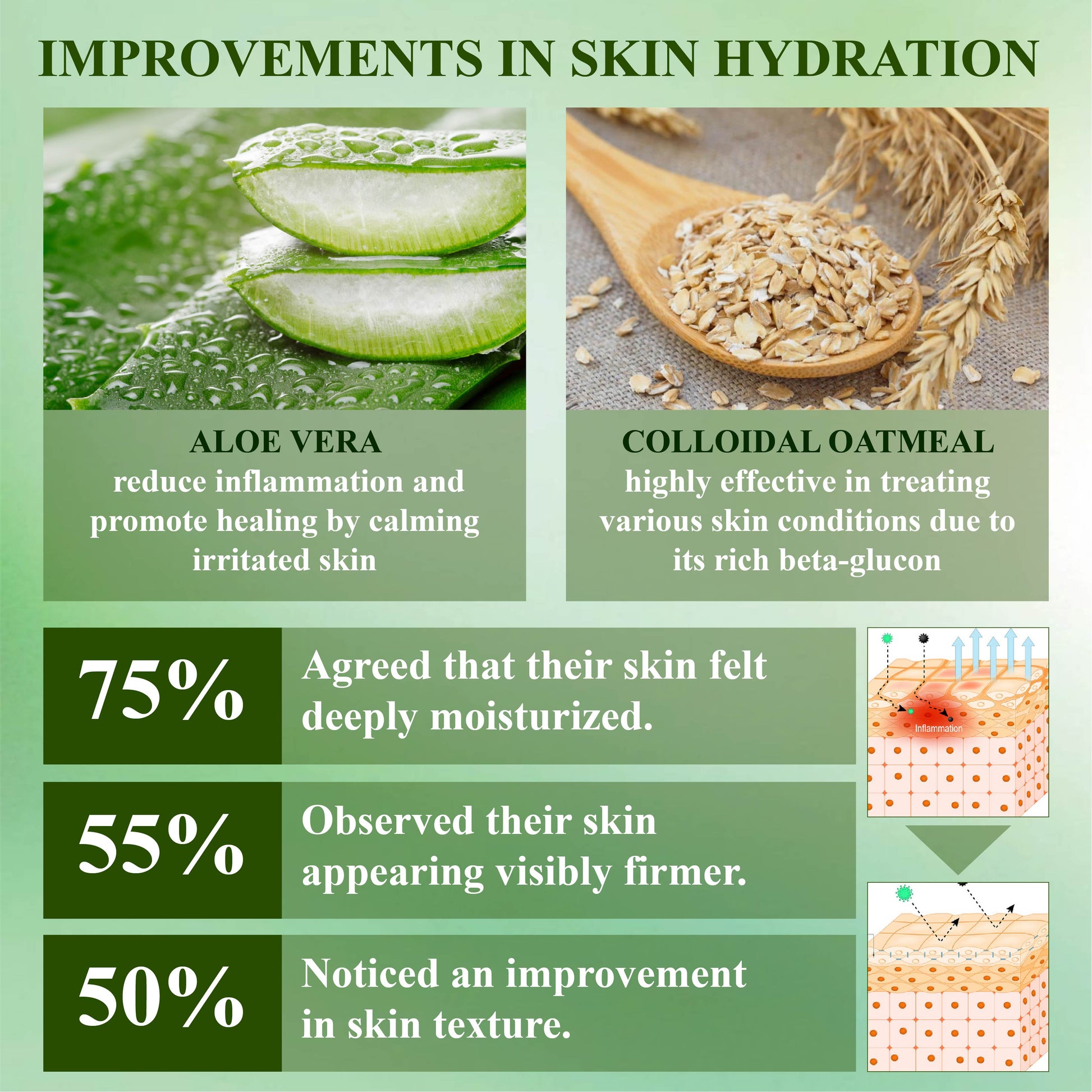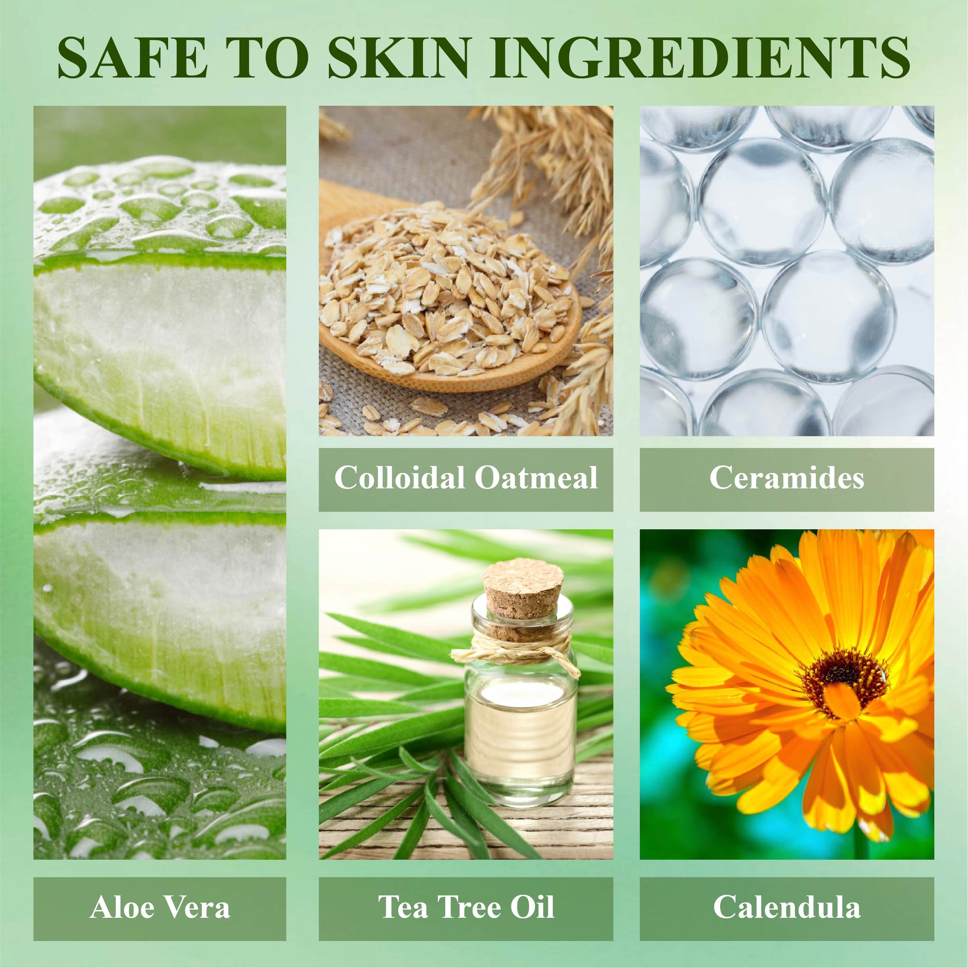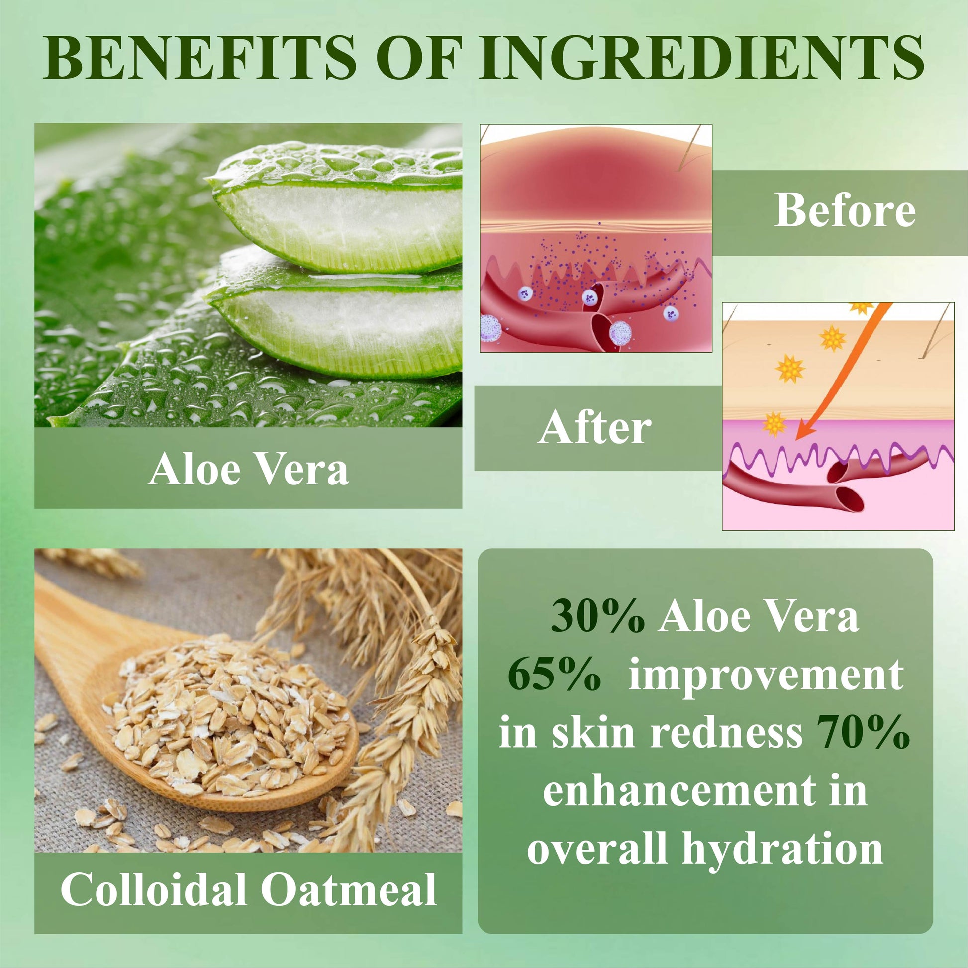 RelievaDerm™ Aloe SkinTherapy HydratingGel combines the powerful benefits of aloe vera, colloidal oatmeal, ceramides, tea tree oil extract, and calendula to soothe and restore skin. Aloe vera deeply hydrates and calms irritation, while colloidal oatmeal locks in moisture and reduces itching. Ceramides strengthen the skin's natural barrier, enhancing hydration and protection, while tea tree oil extract provides antibacterial properties to promote healing. Calendula offers anti-inflammatory benefits helping to reduce redness and support skin regeneration.