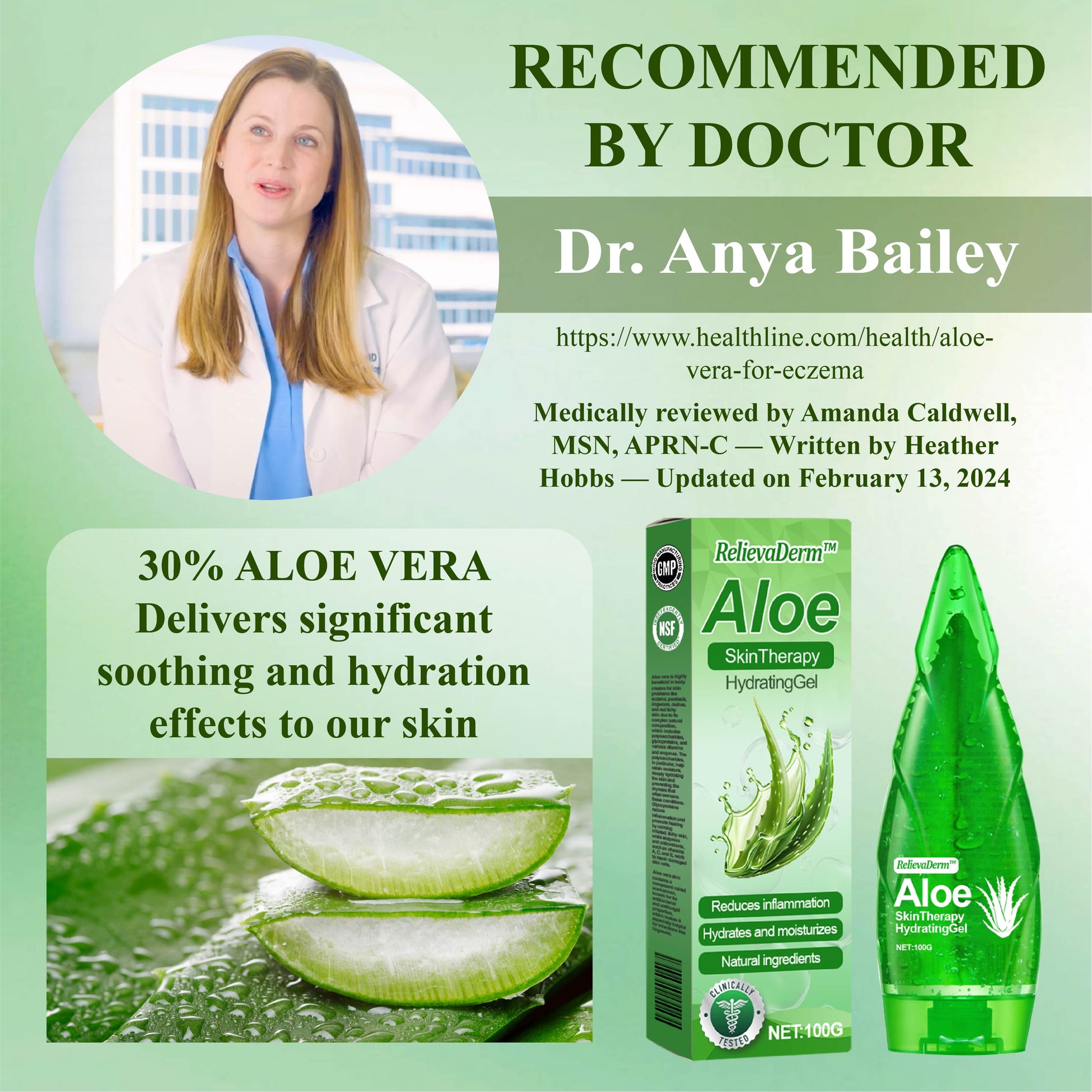 Endorsed by Dr. Anya Bailey from the National Dermatology Institute on May 13, 2024, RelievaDerm™ Aloe SkinTherapy HydratingGel offers a promising solution for sensitive and irritated skin. Formulated with 30% aloe vera, this gel delivers significant soothing and hydration effects suitable for daily use.