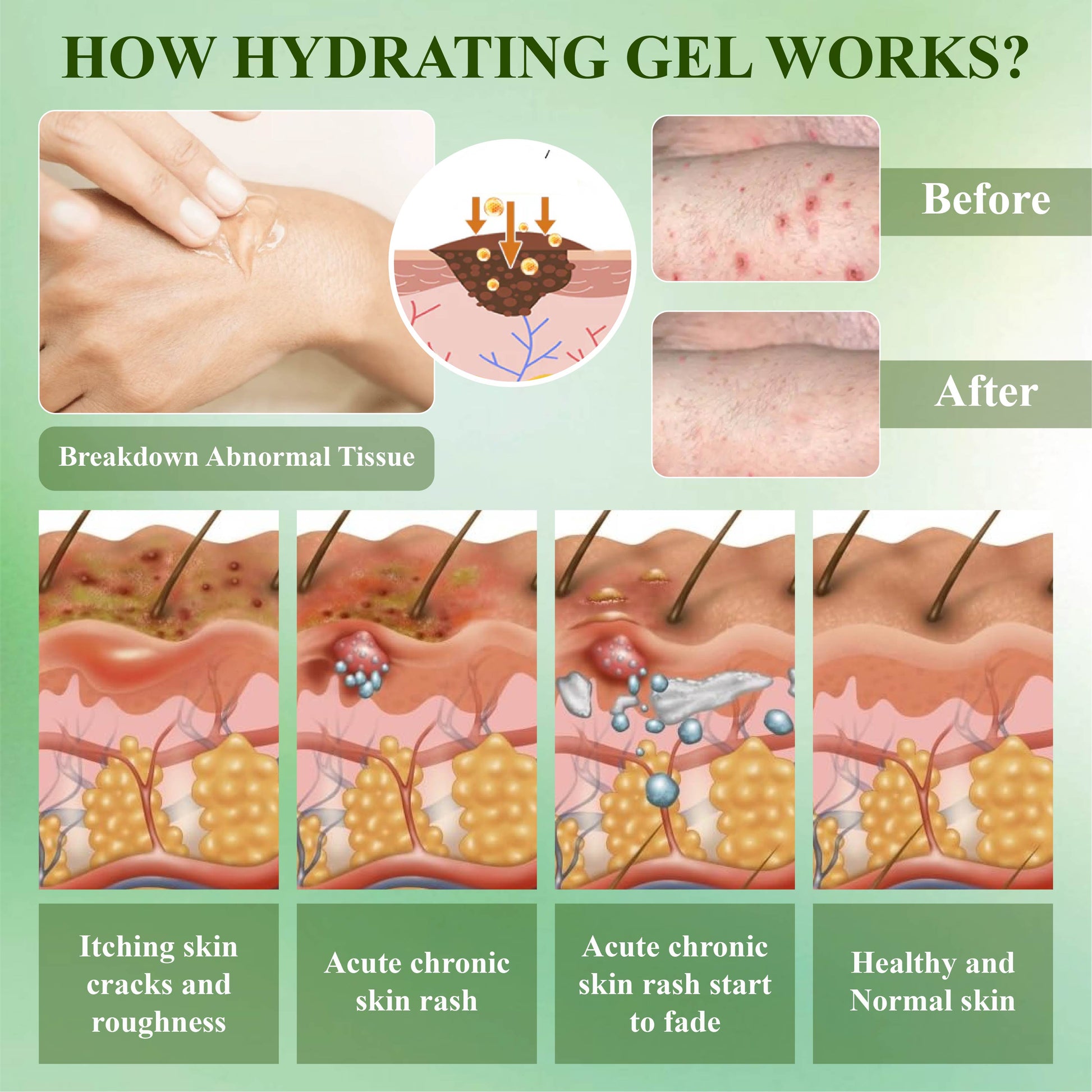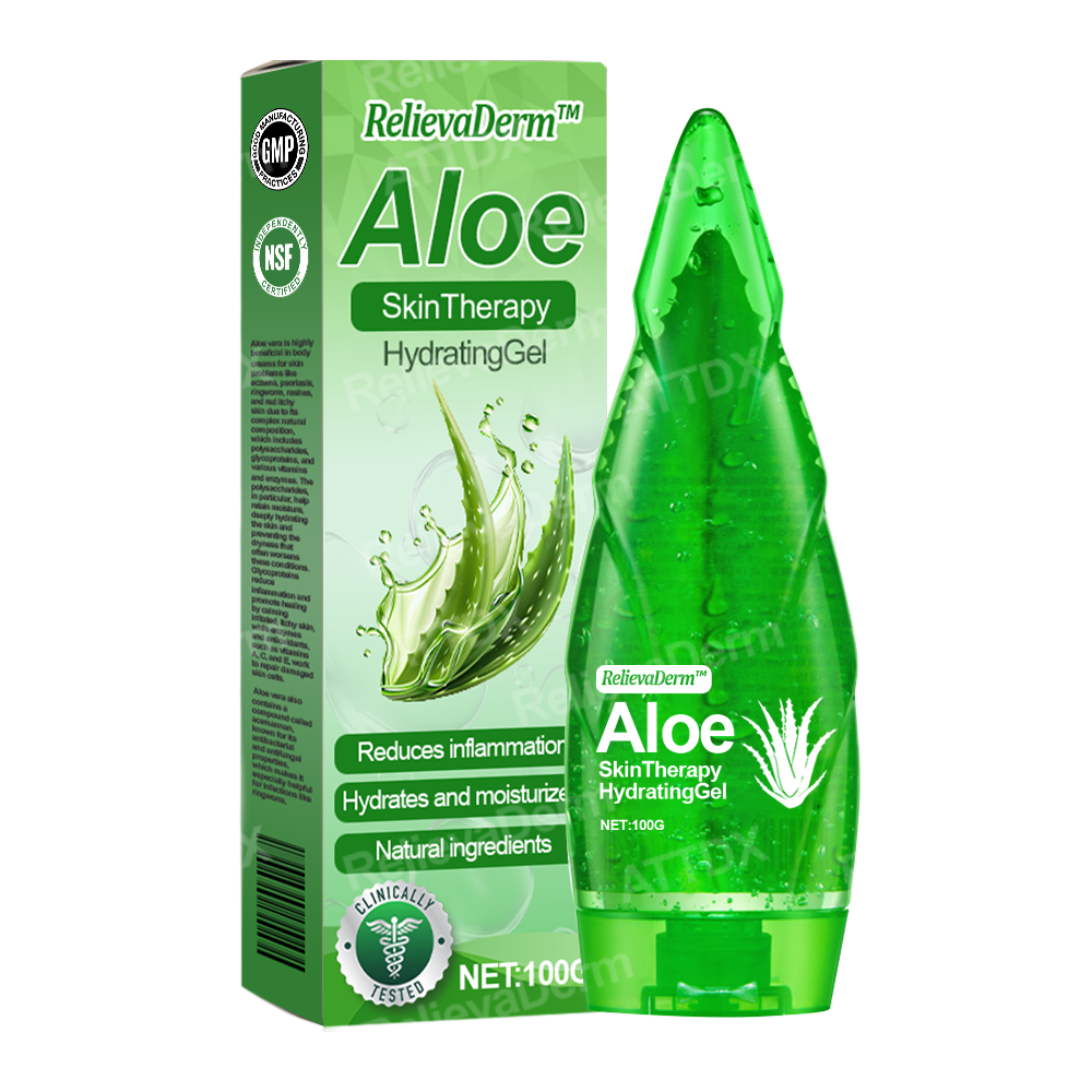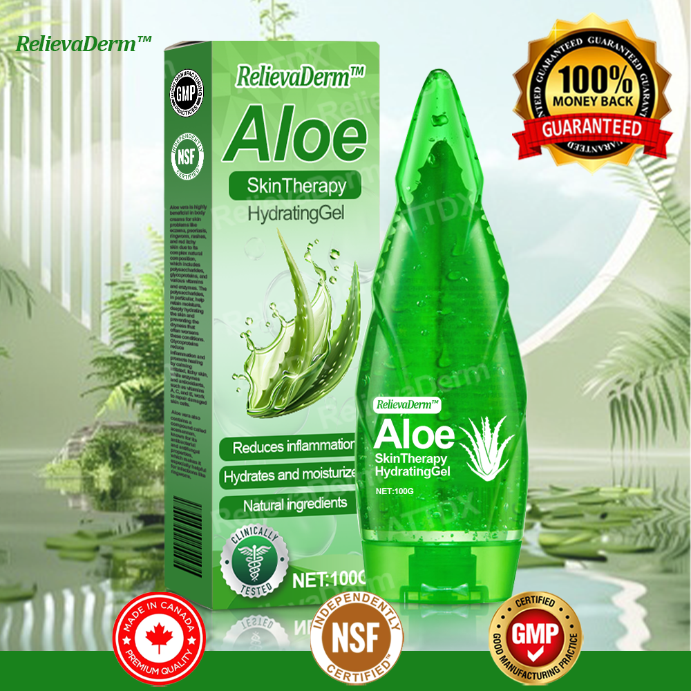 RelievaDerm™ Aloe SkinTherapy Hydrating Gel harnesses the power of aloe vera to soothe eczema, psoriasis, rashes, and redness. Its polysaccharides deeply hydrate, while glycoproteins and vitamins A, C, and E reduce inflammation, promote healing, and repair irritated skin with antibacterial protection.